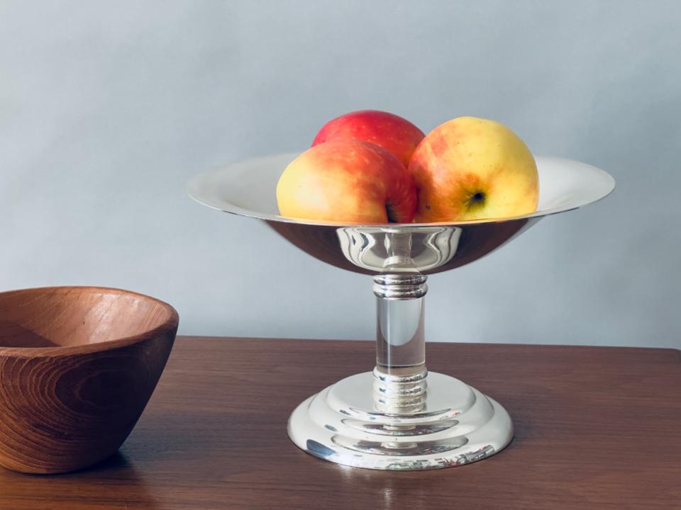 1970er Schale Fussschale versilbert Plexiglas Italy Artdeco
