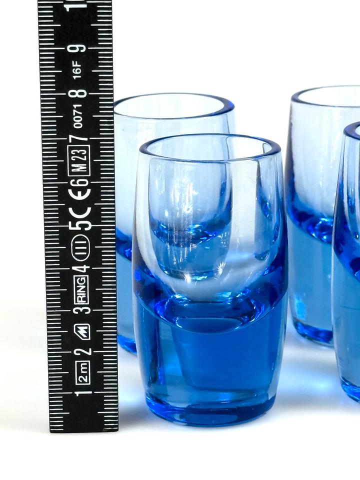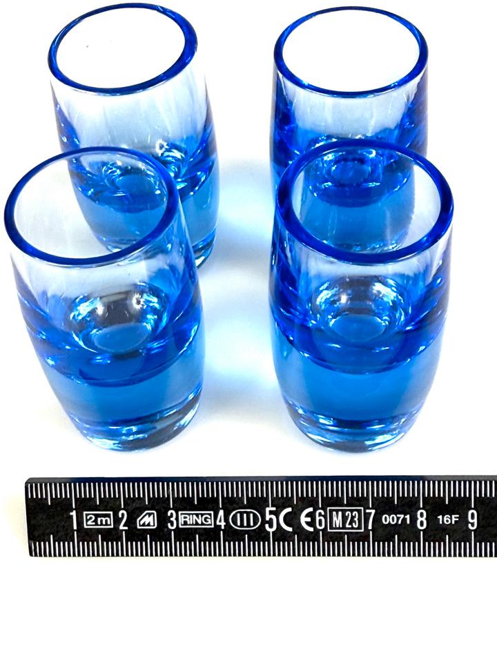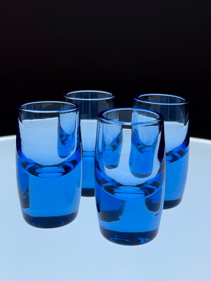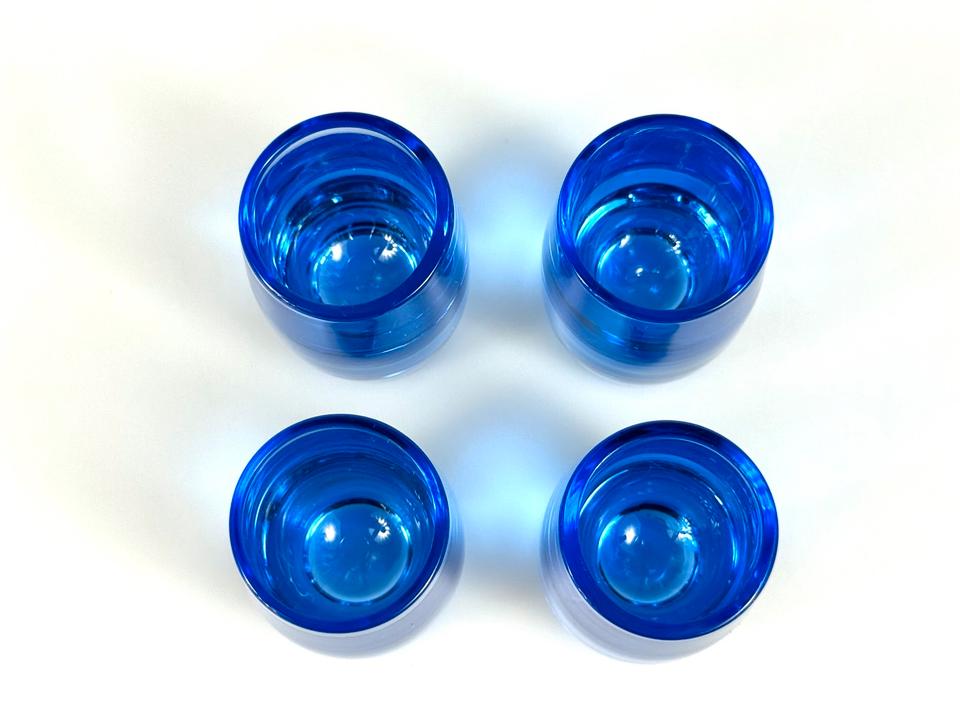 Set aus vier blauen mundgeblasenen Schnapsgläsern aus Kristallglas, Schweden, 1960er.