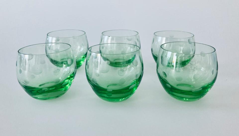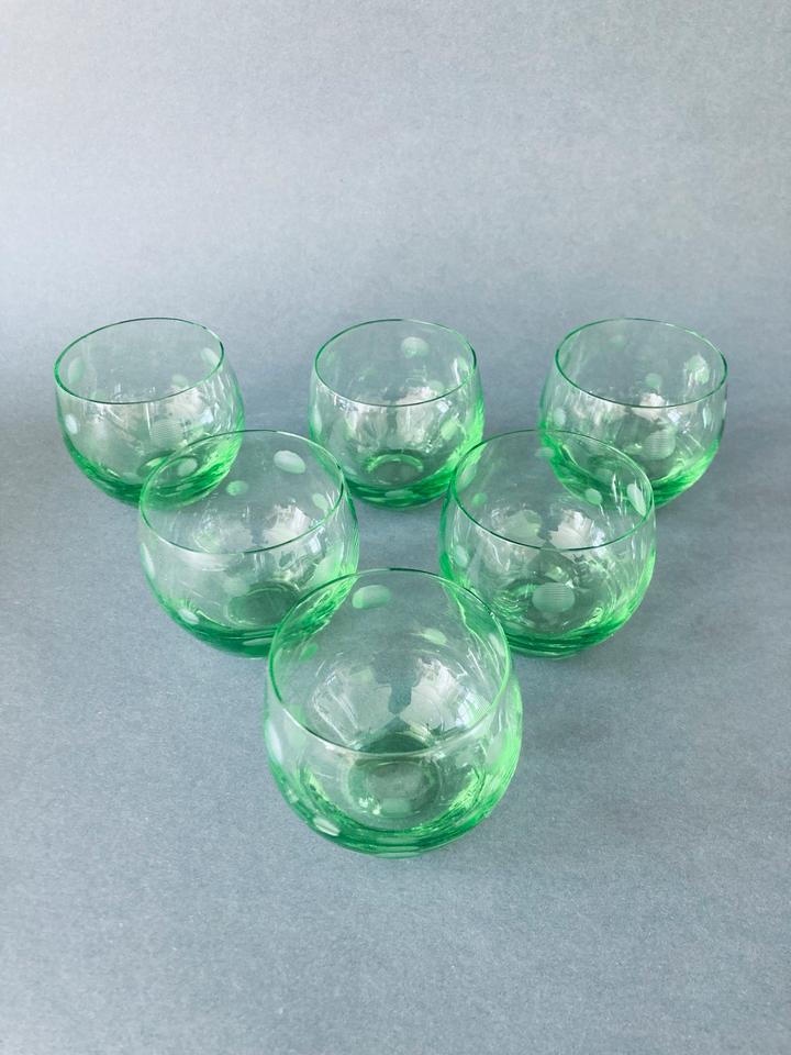 6 kleine Tumbler Gläser grün Midcentury mundgeblasen 1950er
