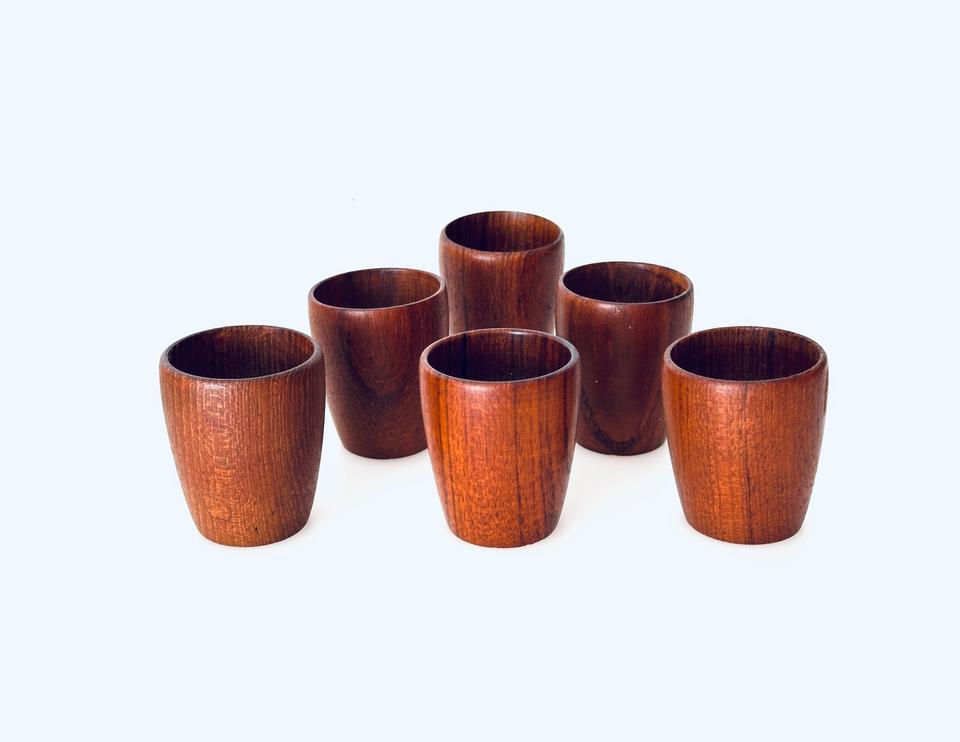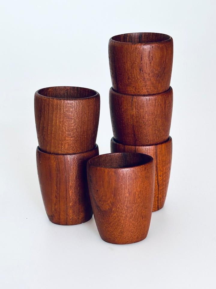 6 Teak Eierbecher Denmark 1960er Danish Modern