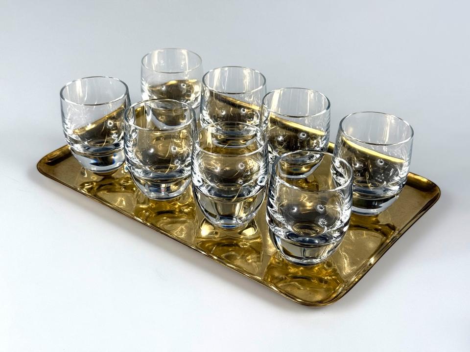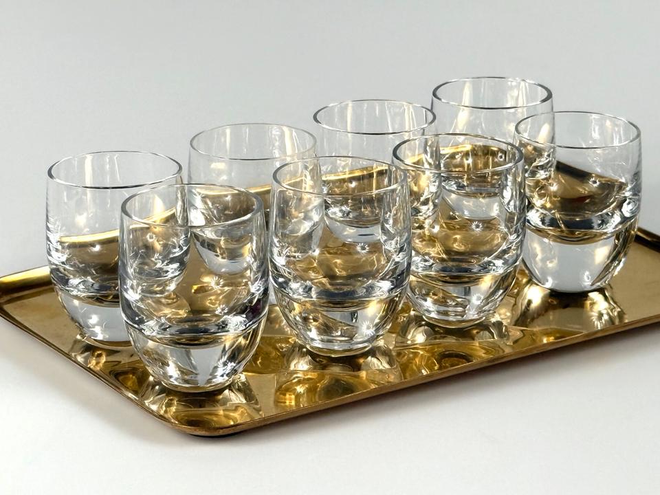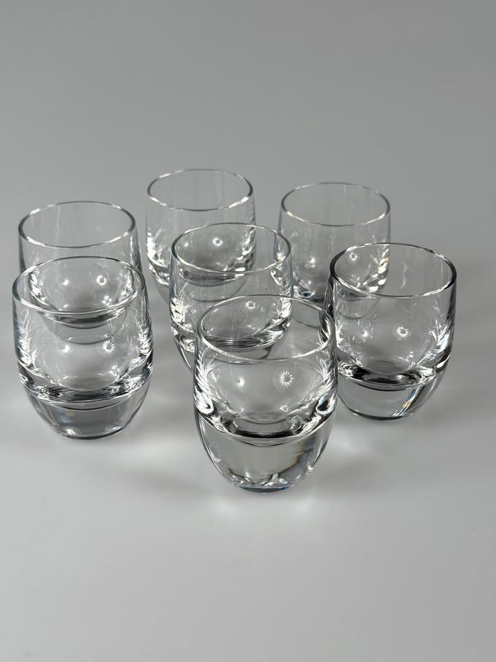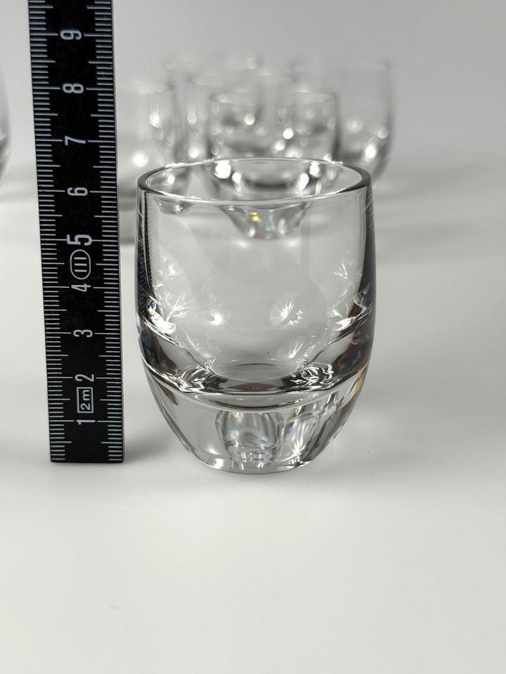 Set aus sechs funkelnden mundgeblasenen und handgeschliffenen Schnapsgläsern aus Kristallglas, Serie Polo, Peill & Putzler, 1960er.