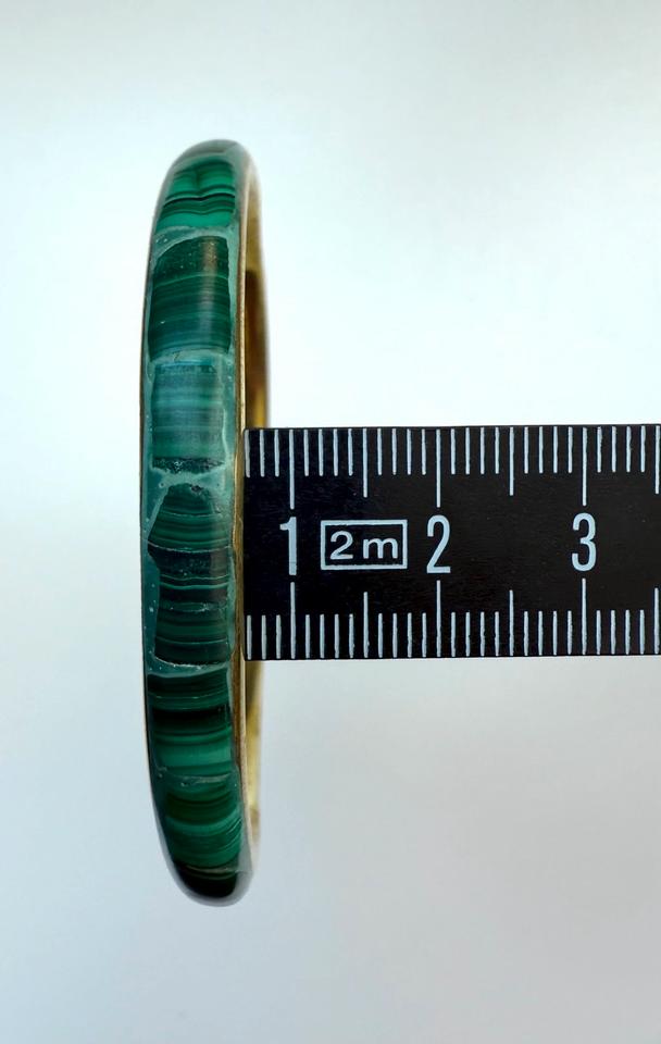 Schmaler Armreif aus Messing mit Malachiteinsatz.