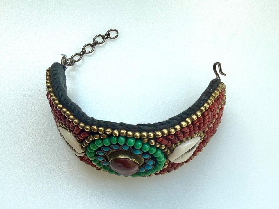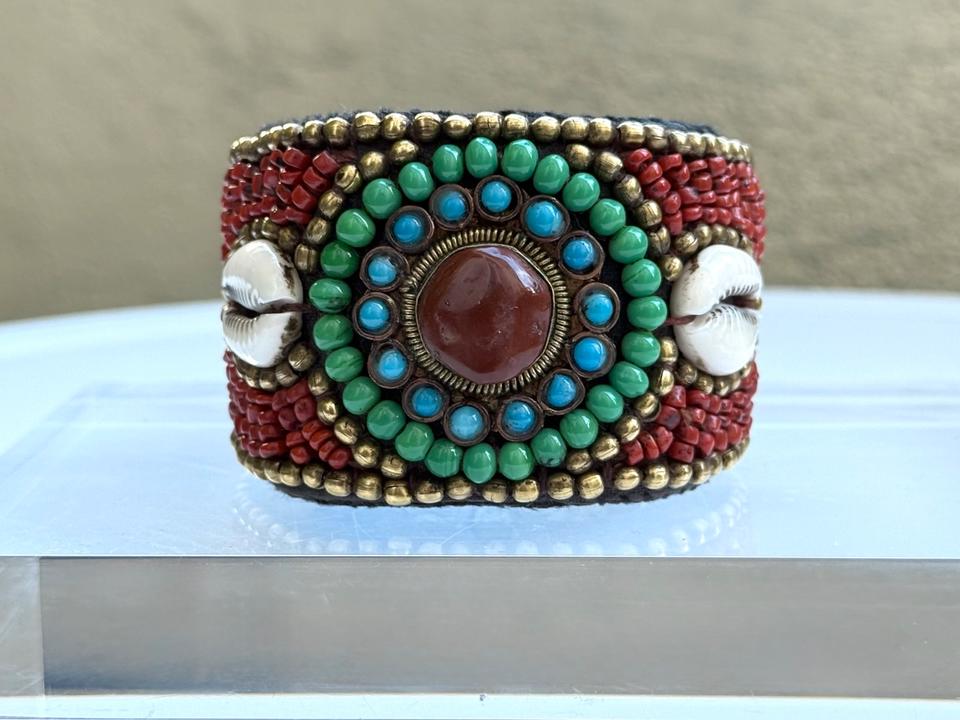 Armreif Tibet Armband perlenbestickt Kaurimuschel Vintage