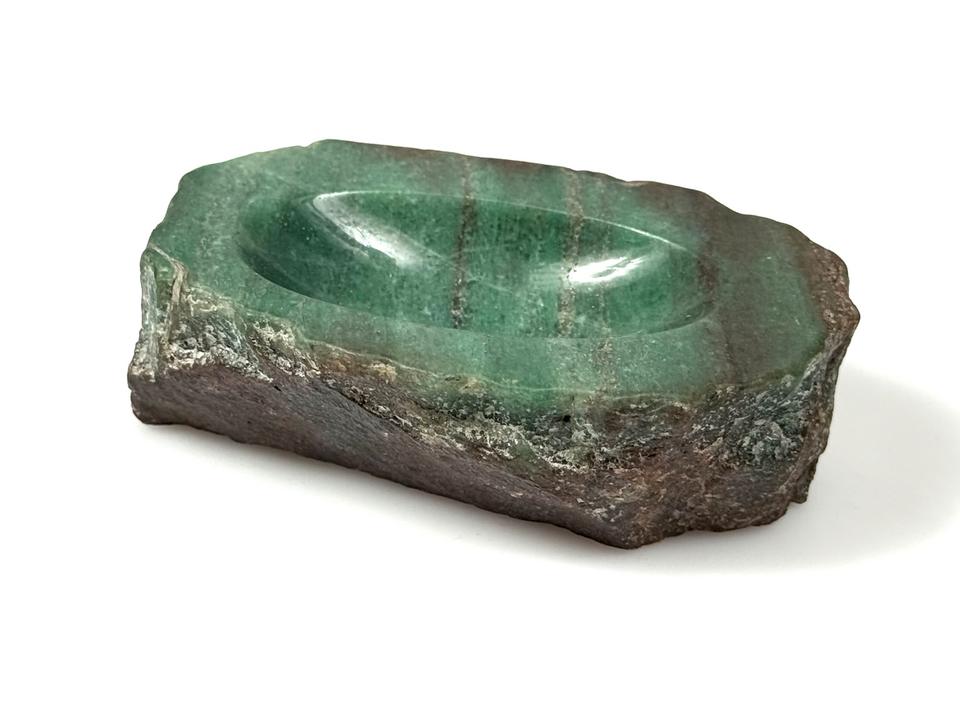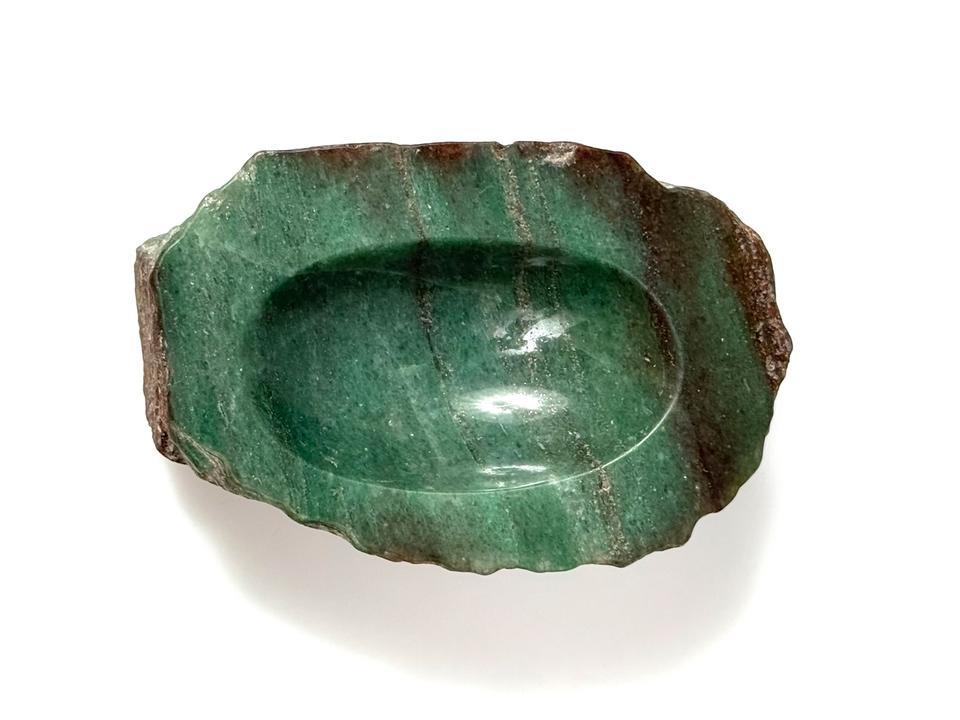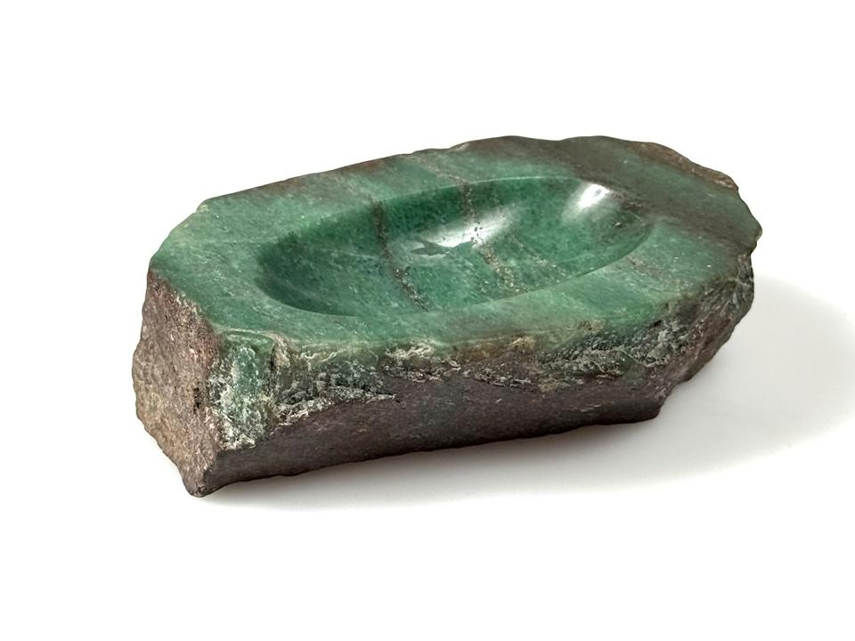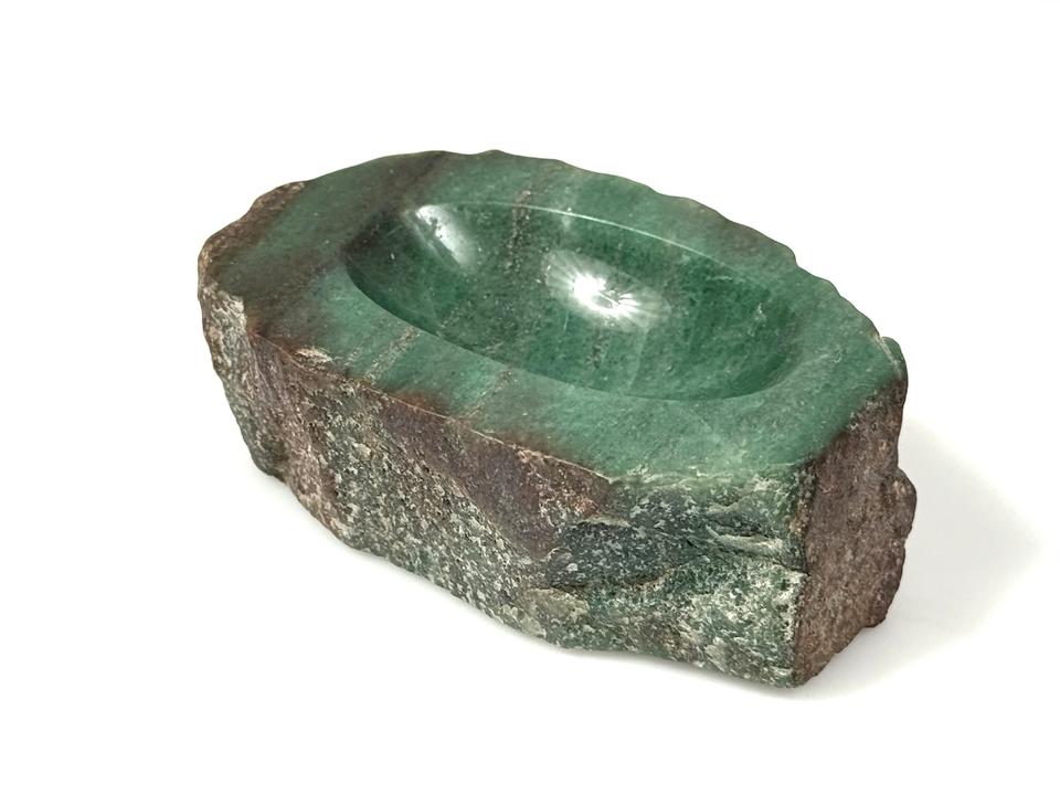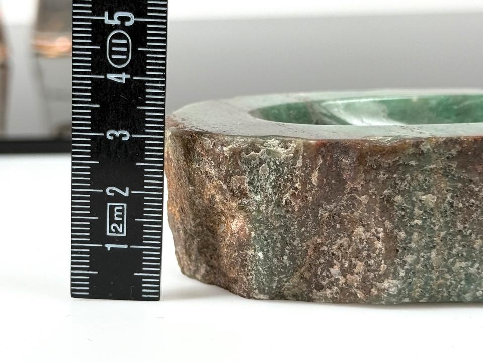 Massiver Aschenbecher aus echtem Aventurin / Naturstein. Das Stück ist hochwertig gearbeitet, mit polierter Mulde und naturbelassener Außenseite. Die grüne Farbe mit typischer Aventurin-Struktur wirkt sehr edel und dekorativ. Ungenutzt, auch schön…