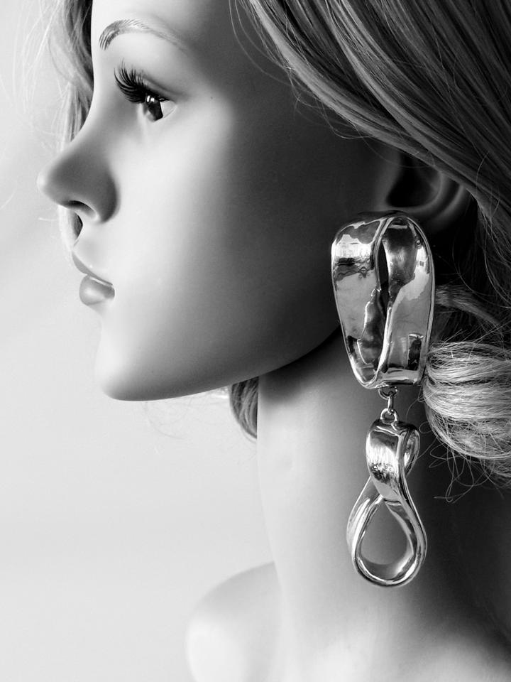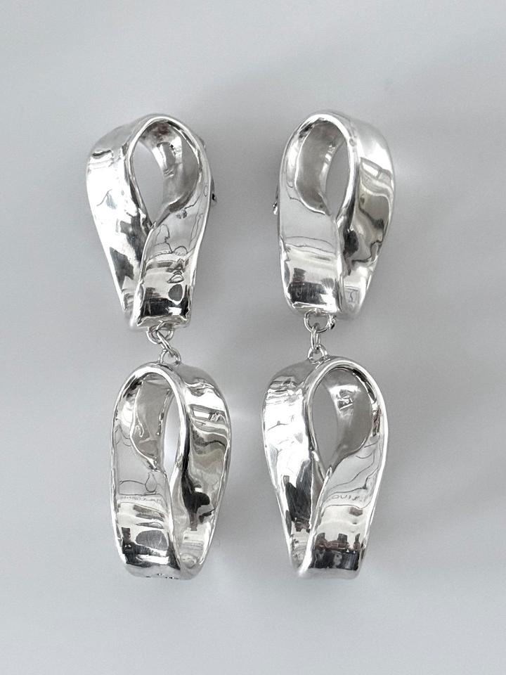 Paar Ohrclips, Hersteller Bat-Ami, Israel, 1970er/80er, Ausführung in 925er Sterling Silber, mit 925 mehrfach gepunzt. Skulpturale, organisch modellierte Form. Herstellungstechnik: Electroforming.