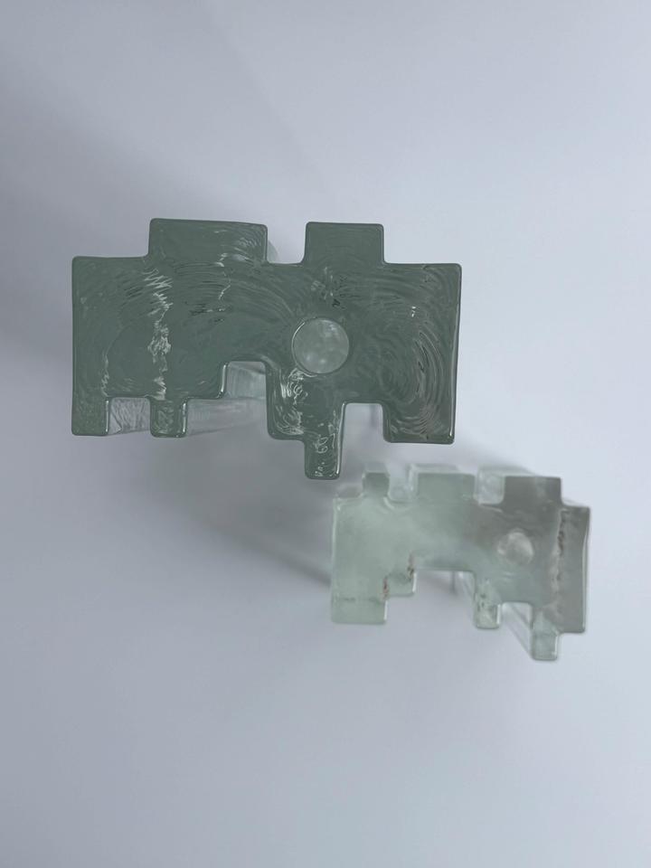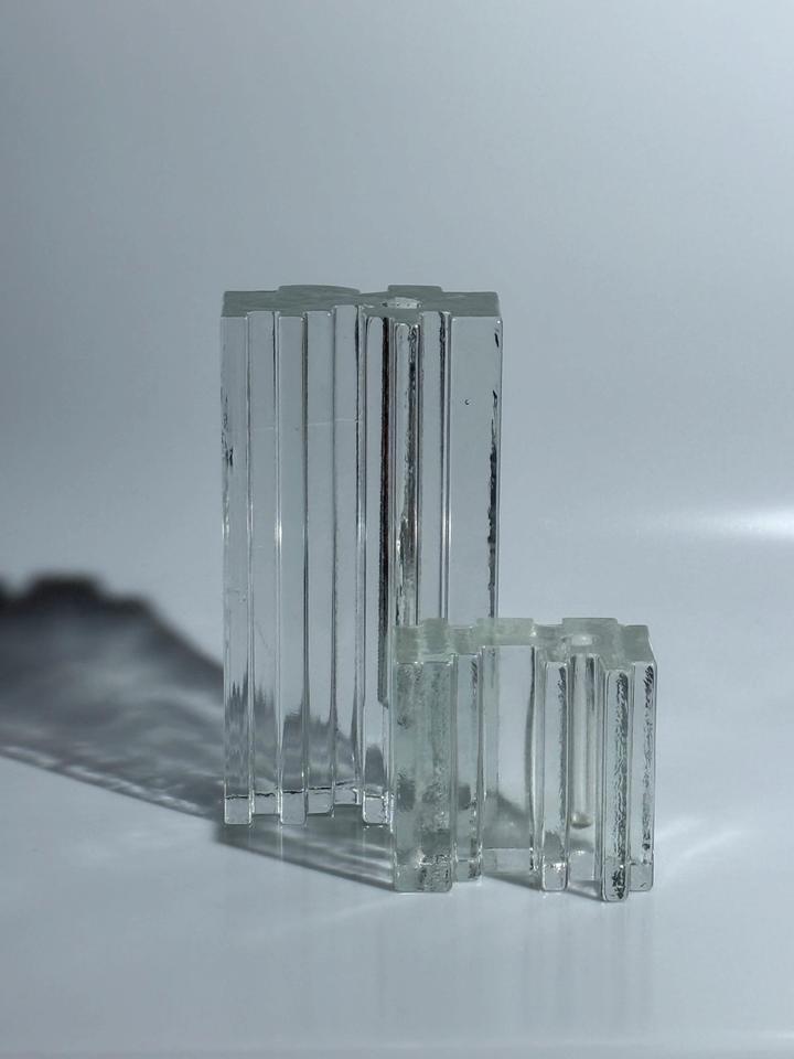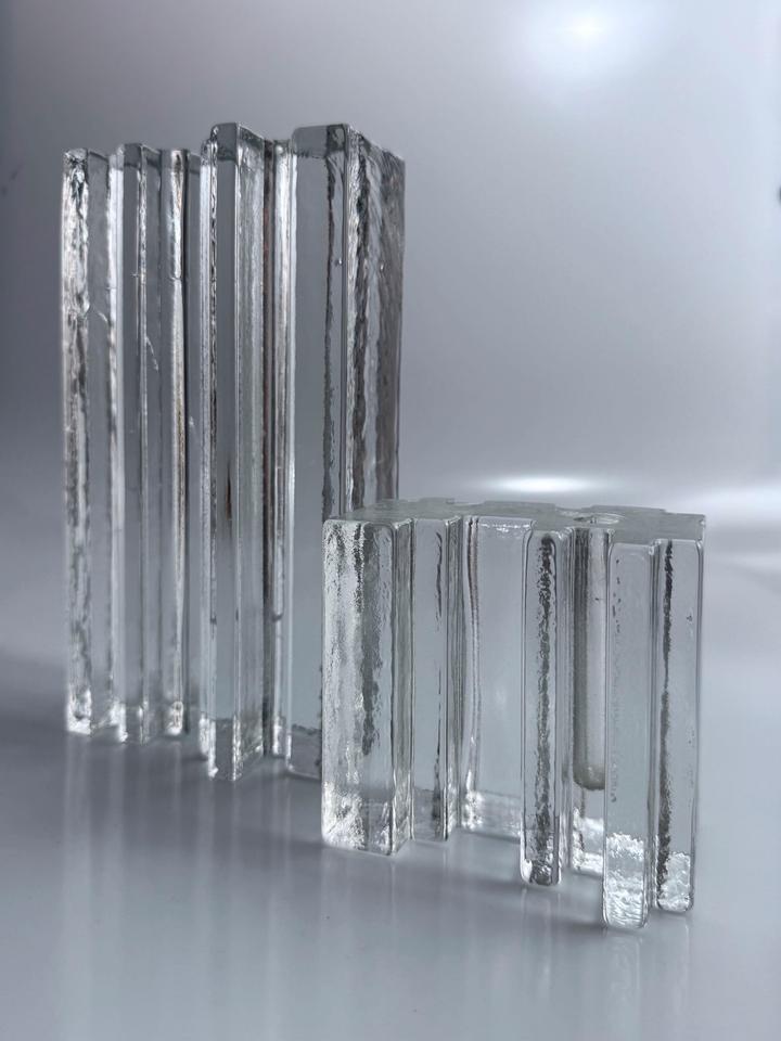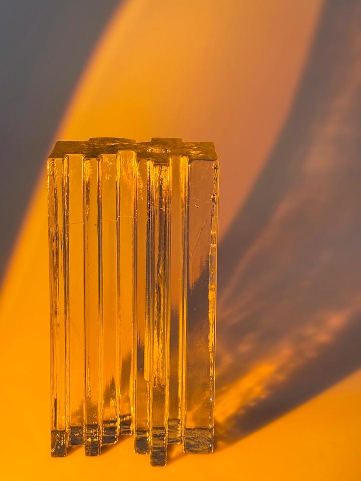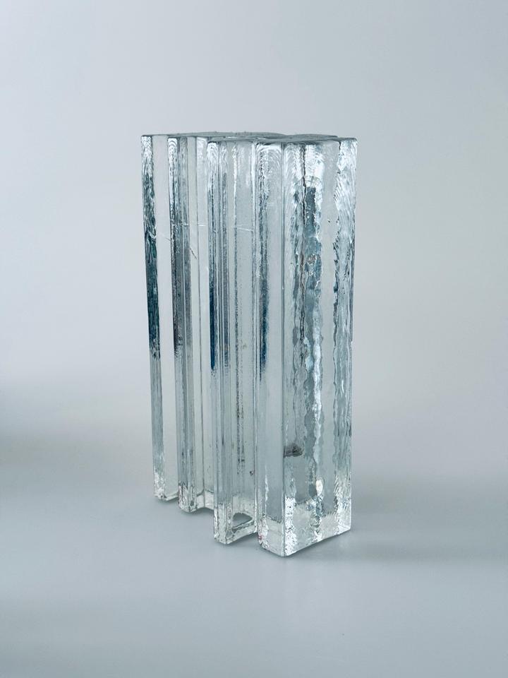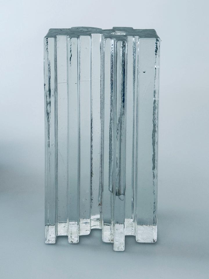 Schwere Blockvase aus massivem Kristallglas, 1960er, Hersteller (mir) unbekannt.