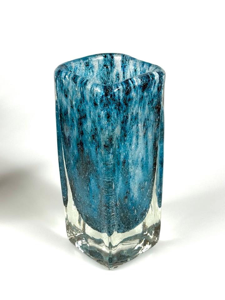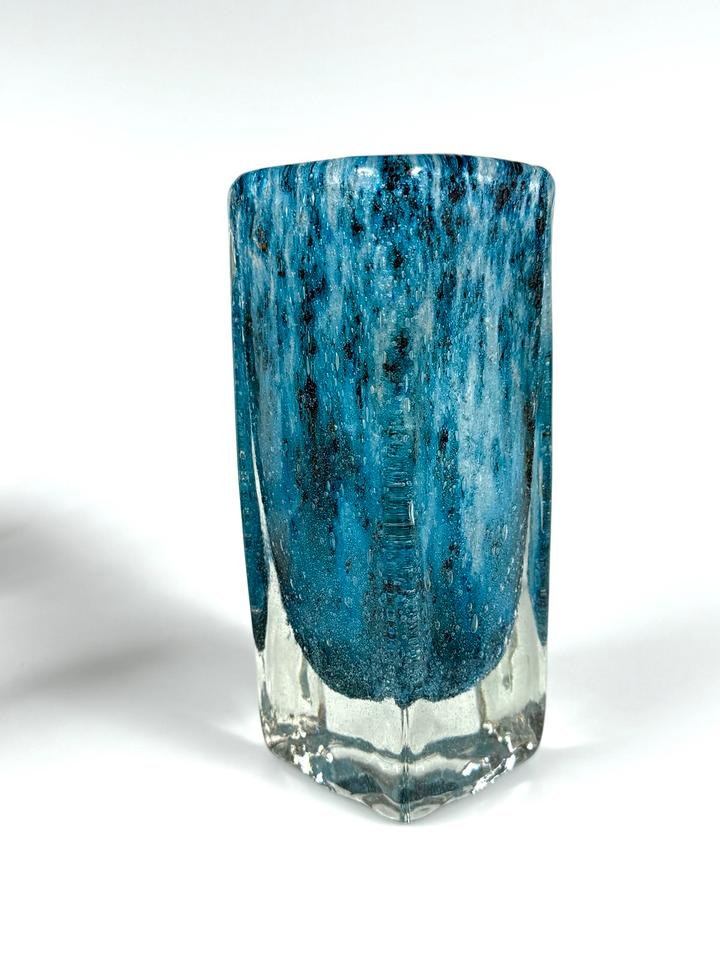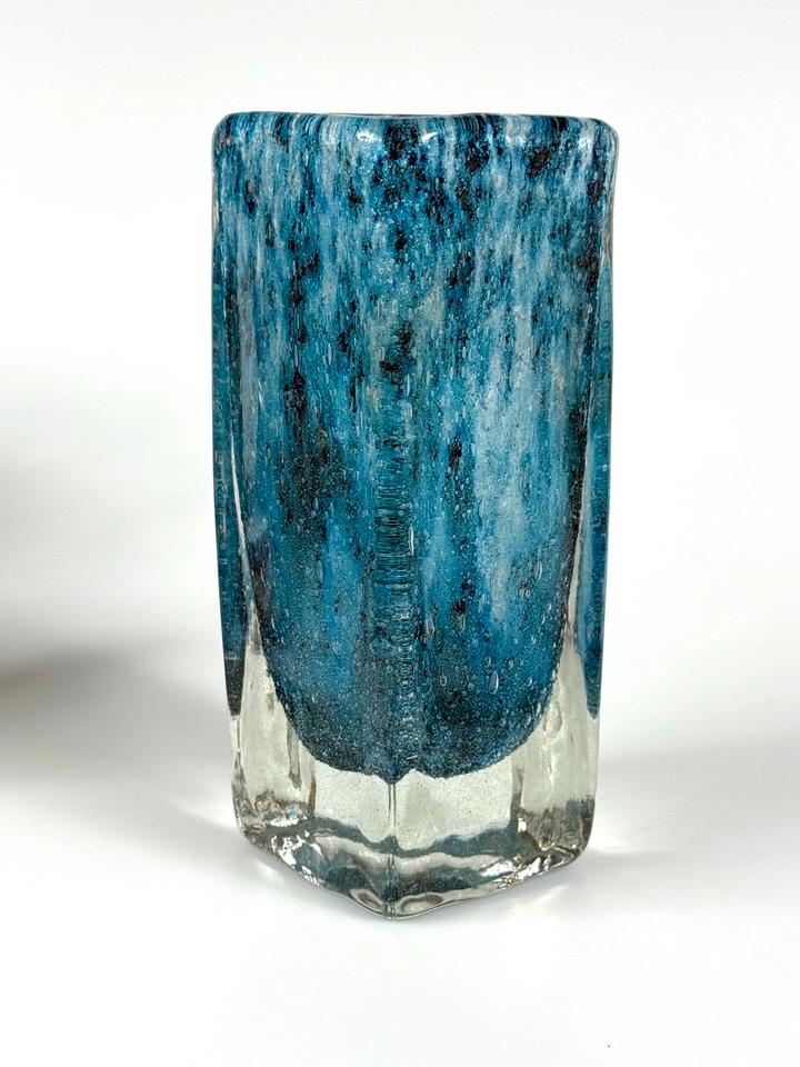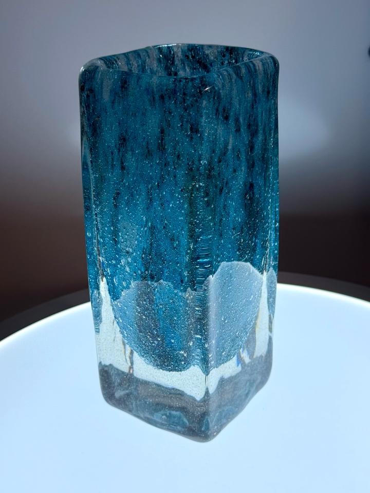Blockvase Murano Vase Kristall Glas blau Kunstglas 2 kg 1960er