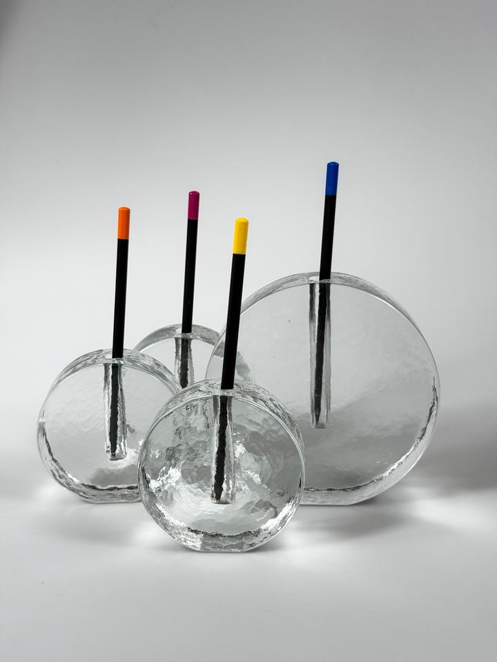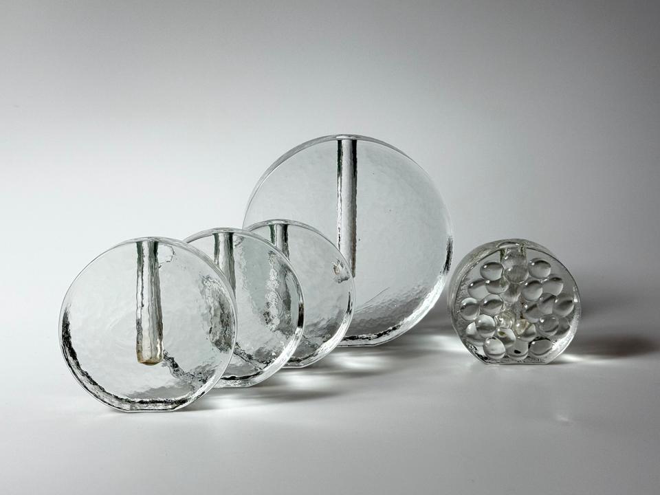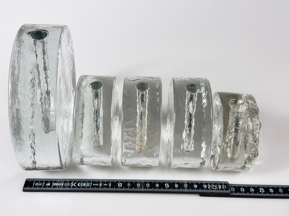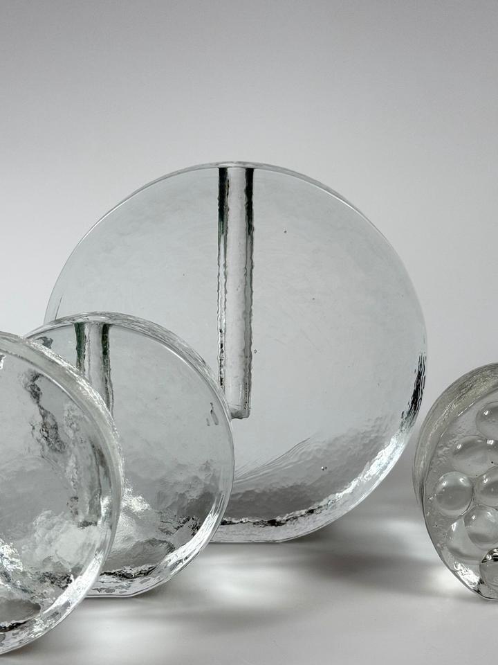 Verschiedene kreisrunde Blockvasen aus massivem Kristallglas, 1960er, von Wiesenthalhütte und Walther Glas.
