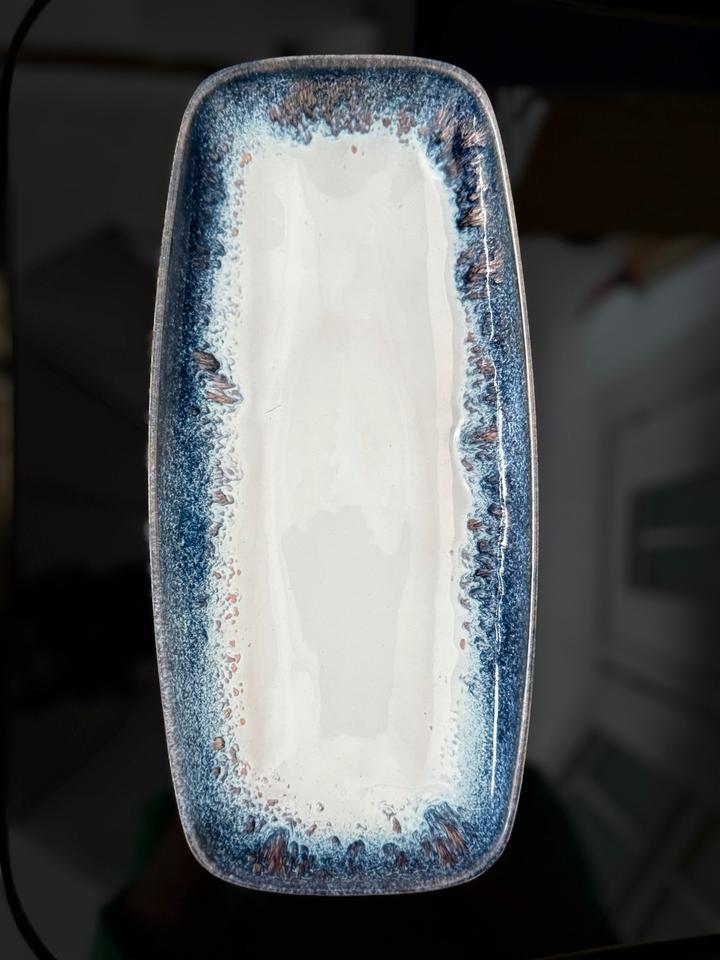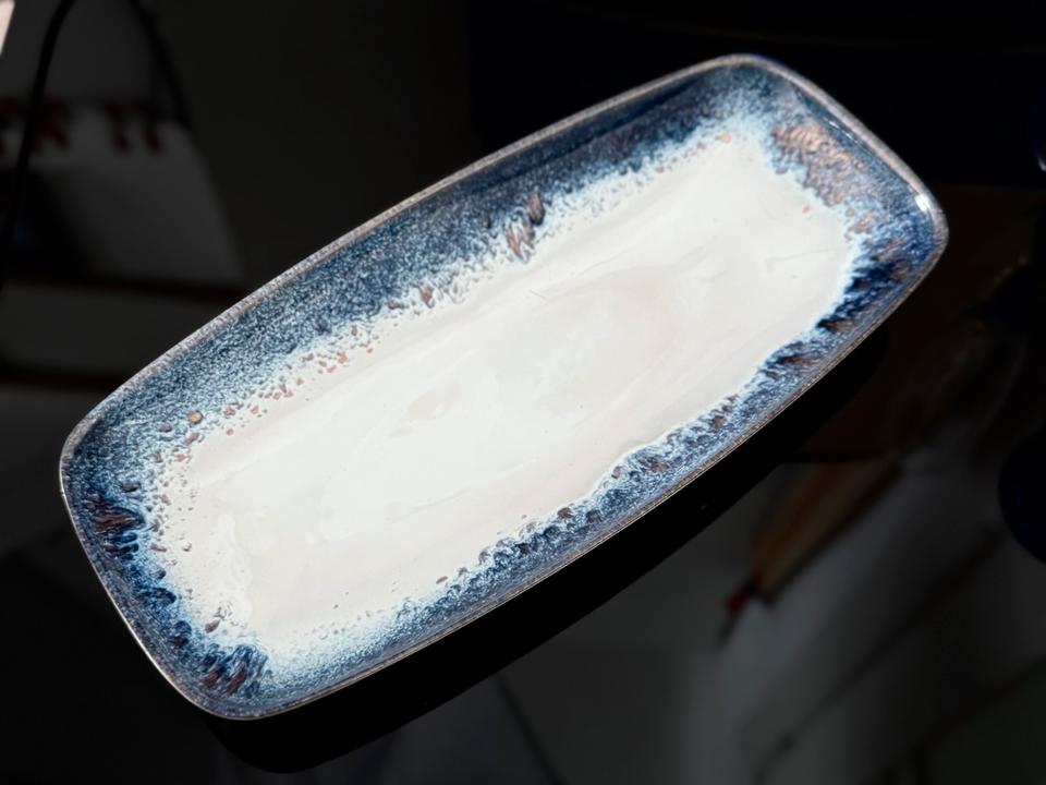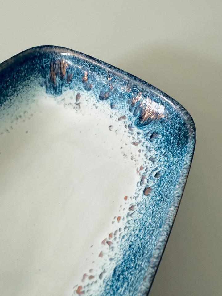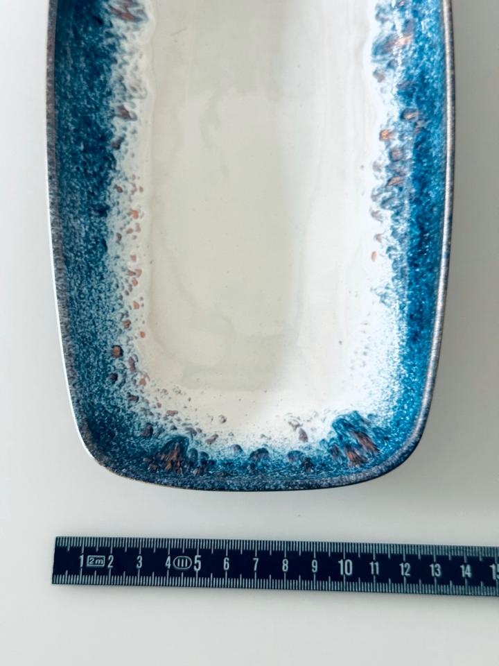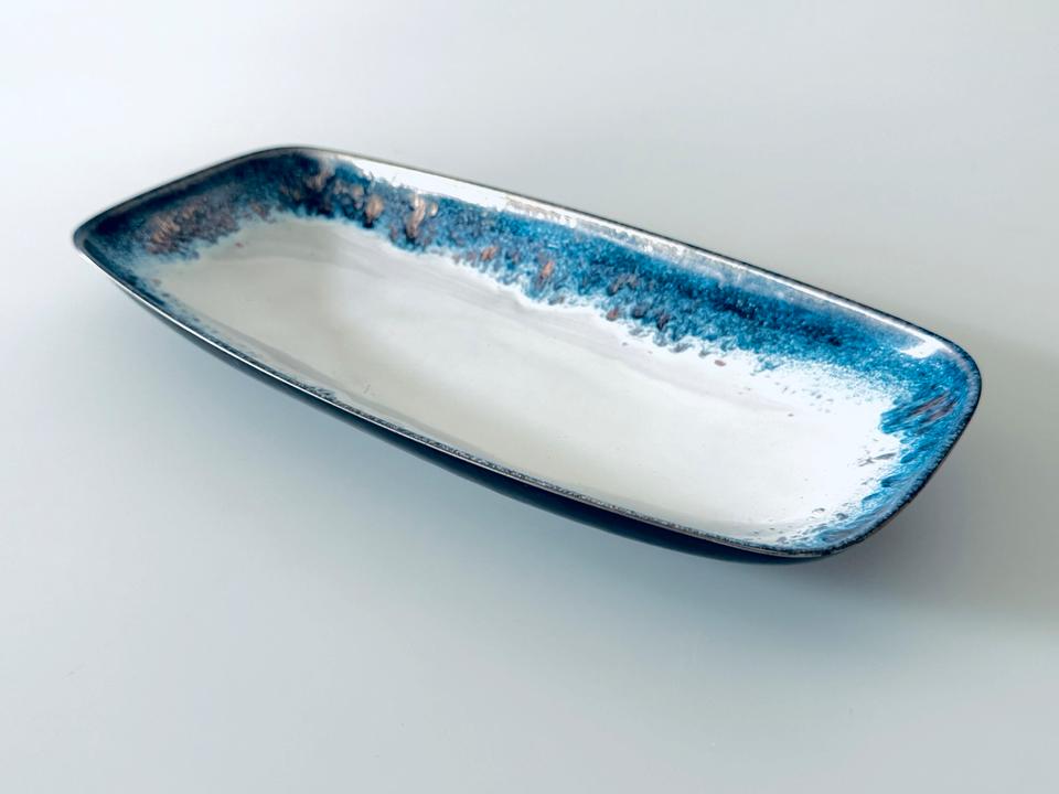 Handemaillierte längliche Schale, 1960er Jahre, Deutschland. Die Schale befindet sich in sehr gutem, gepflegtem Zustand ohne jedwede Beschädigung.