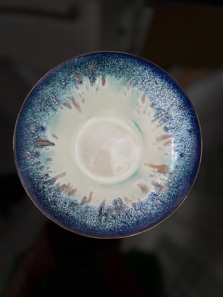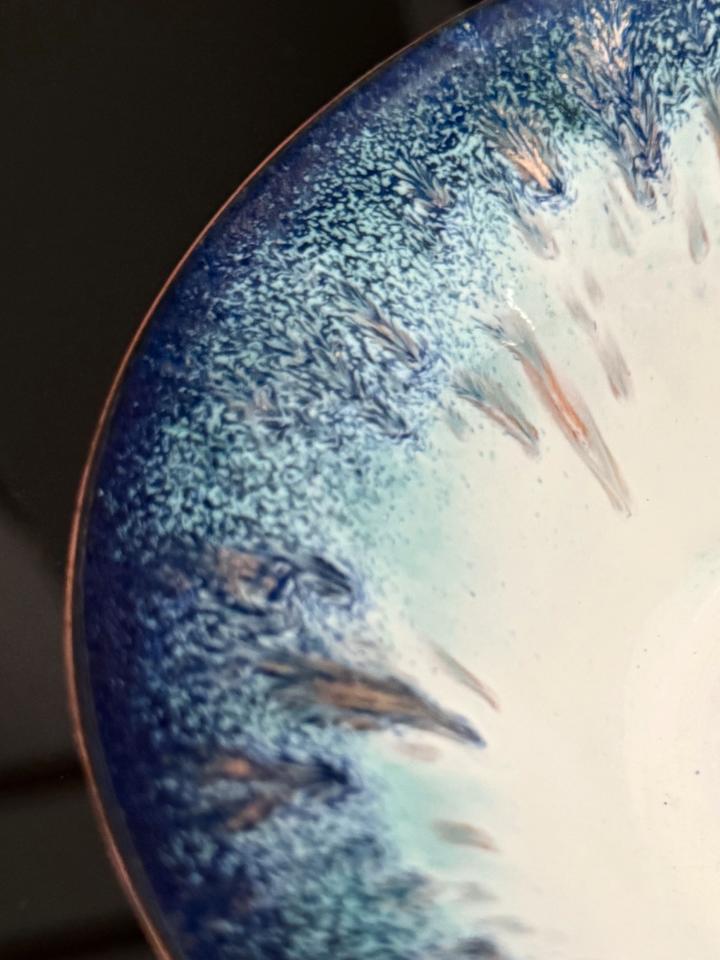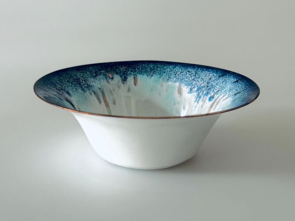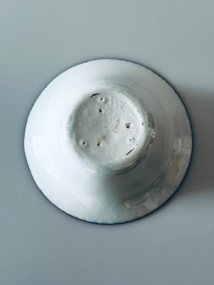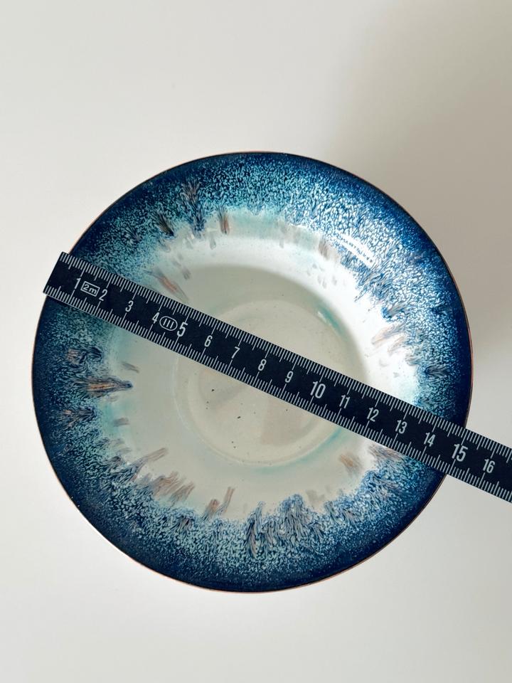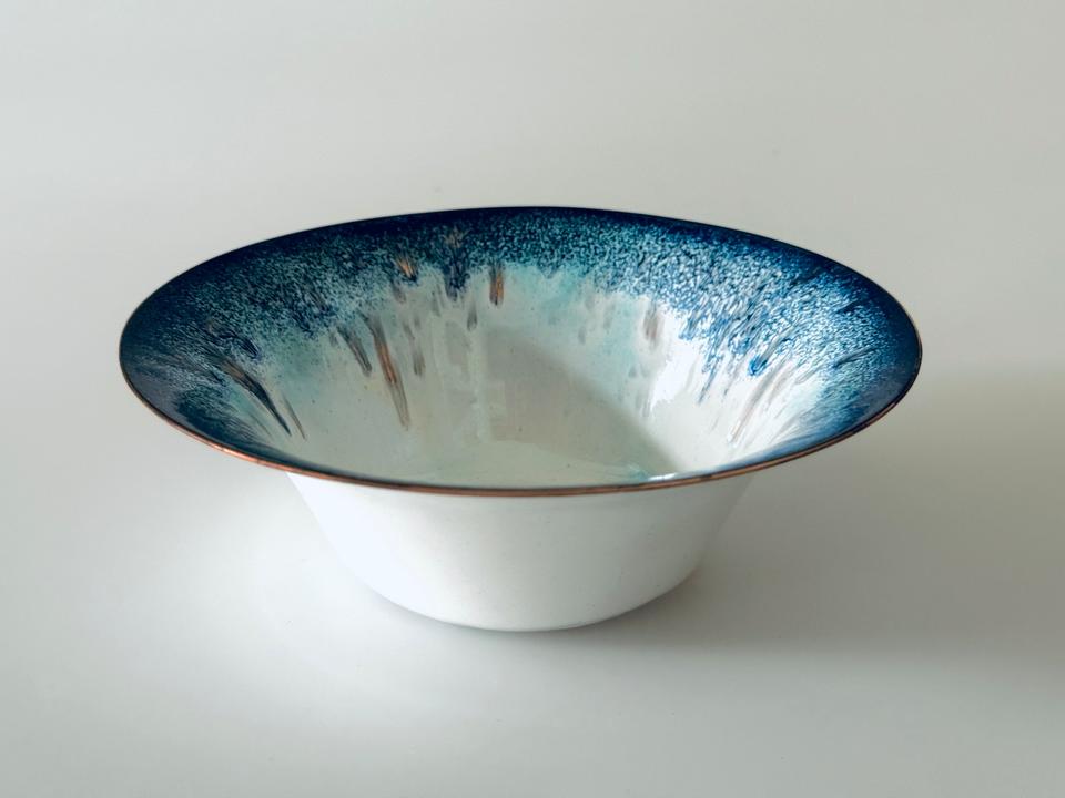 Handemaillierte Schale, 1960er Jahre, Deutschland. Die Schale befindet sich gutem, gepflegtem Zustand mit leichten Gebrauchsspuren und unregelmäßig gearbeiteter Basis, vermutlich war mal ein Filz darunter geklebt.