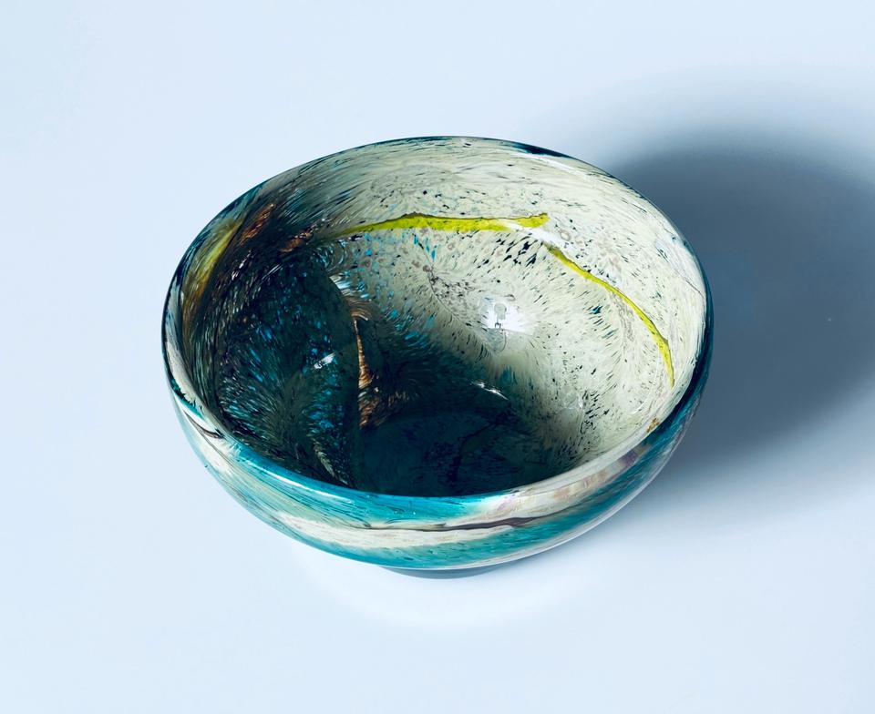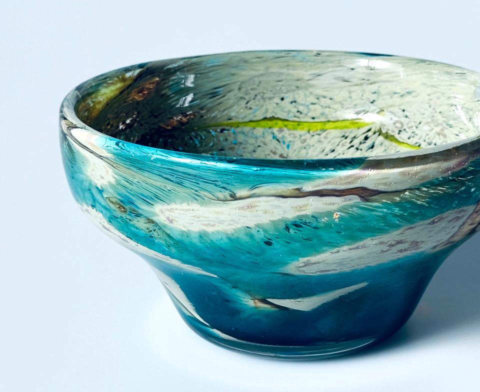 Glasschale Schale Handarbeit Kristall Glas schwer massiv 1980er