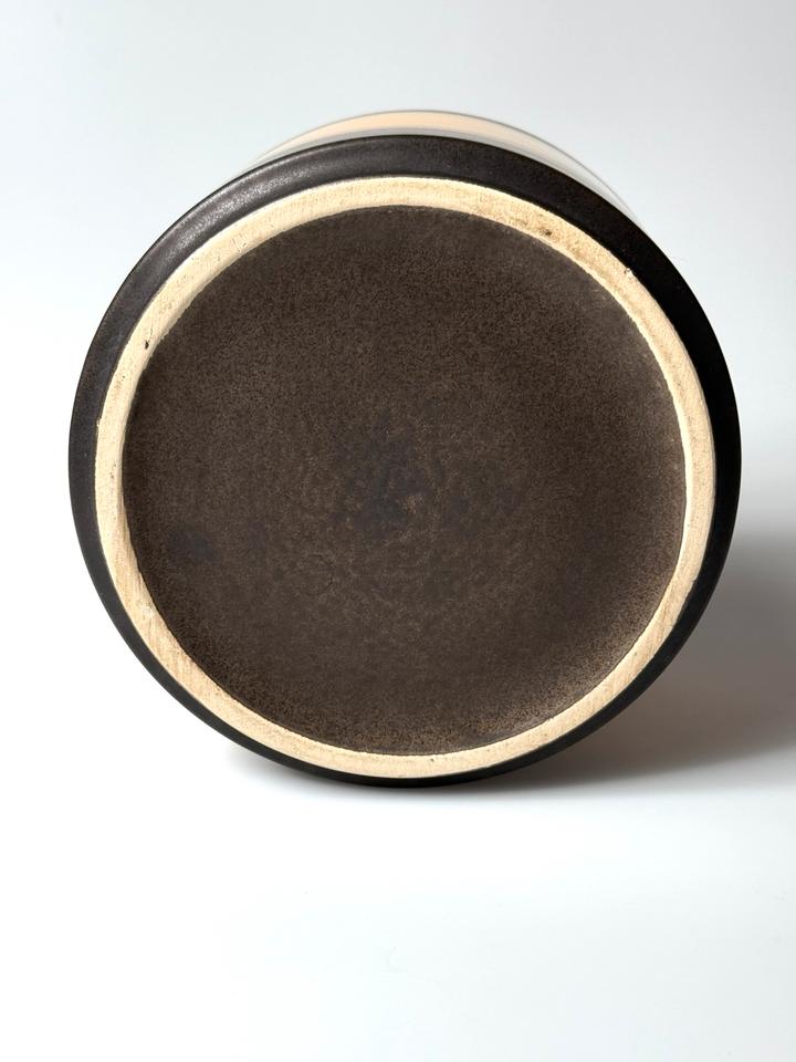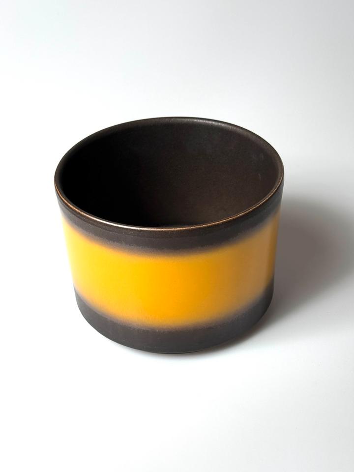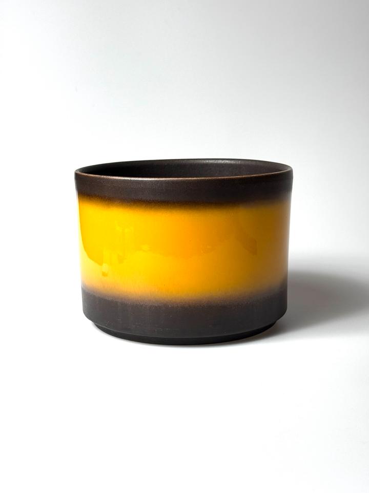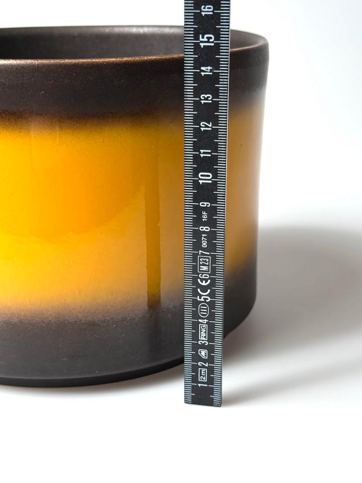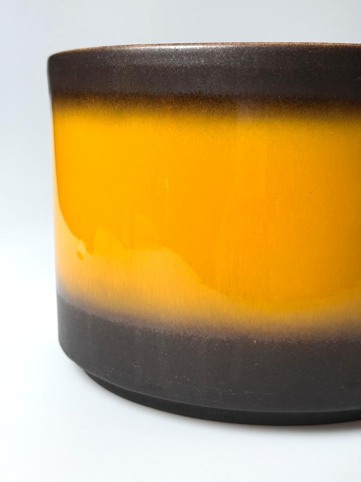 Großer Blumentopf aus Keramik, Jasba, Deutschland, 1960er Jahre. Der Übertopf ist mit einer matt schwarzen und gelben hochglänzenden Glasur versehen und befindet sich in sehr gutem Zustand, lediglich am Boden sind Kalkspuren auszumachen und ein kleiner Flohbiss am Standring, siehe Bilder.
