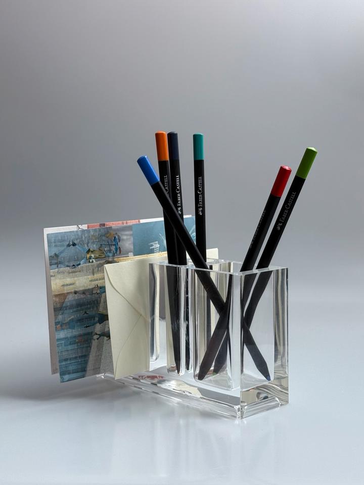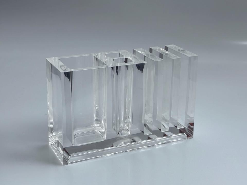 Schreibtisch Organizer aus Acrylglas, Entwurf Fabio Manlio Ciocca für Guzzini, 1970er Jahre. Der Organizer befindet sich in sehr gutem Zustand mit wenigen minimalen Gebrauchsspuren, in Form von leichten Kratzern und einigen Stiftspuren, siehe Bilder.