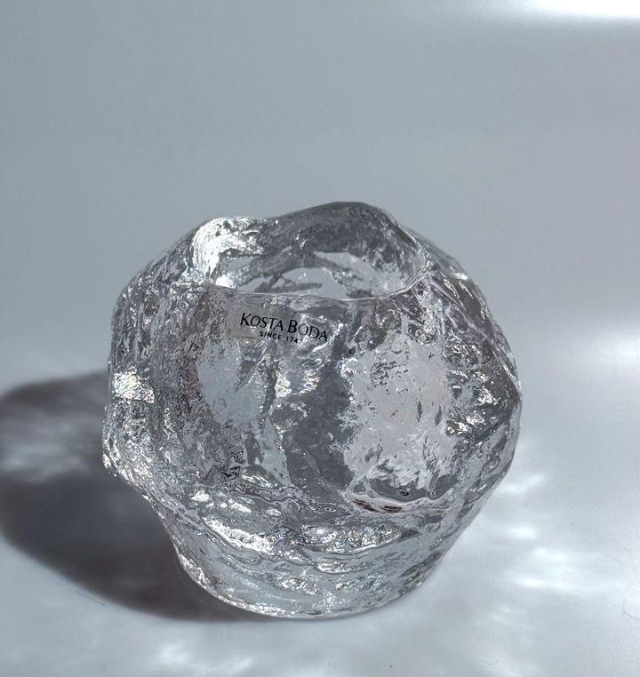 Schwerer Teelichthalter, ‚Snowball’, Entwurf Ann Wärff für Kosta Boda, Schweden, 1960er Jahre.
