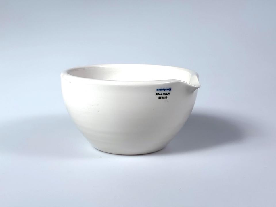 Mörser aus Porzellan, KPM Berlin. Außen glasiert, innen angerauht. Ohne Stößel.