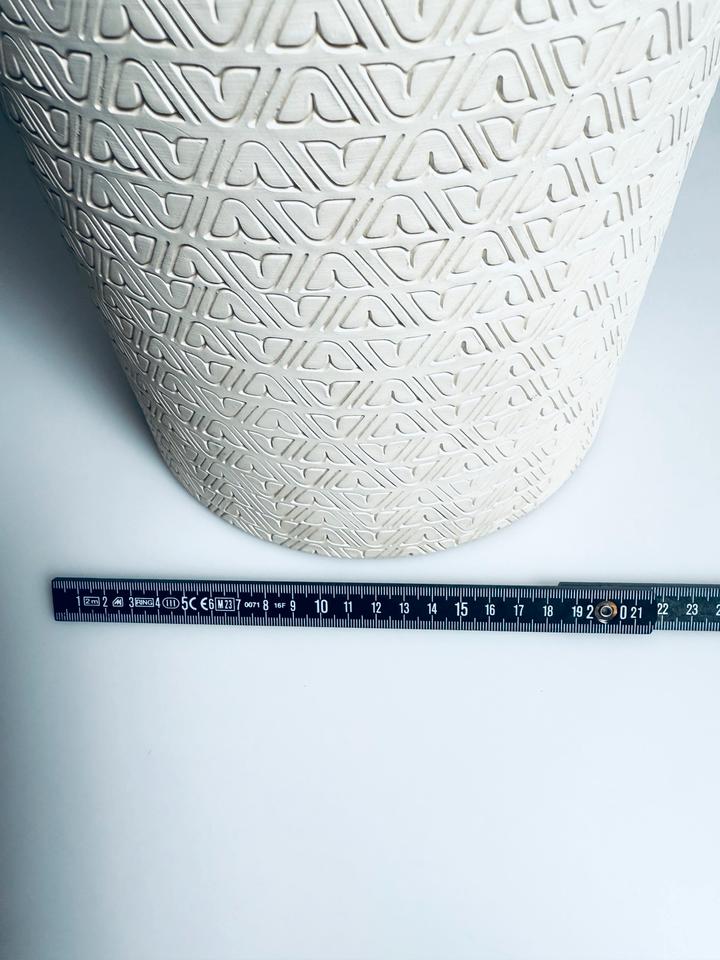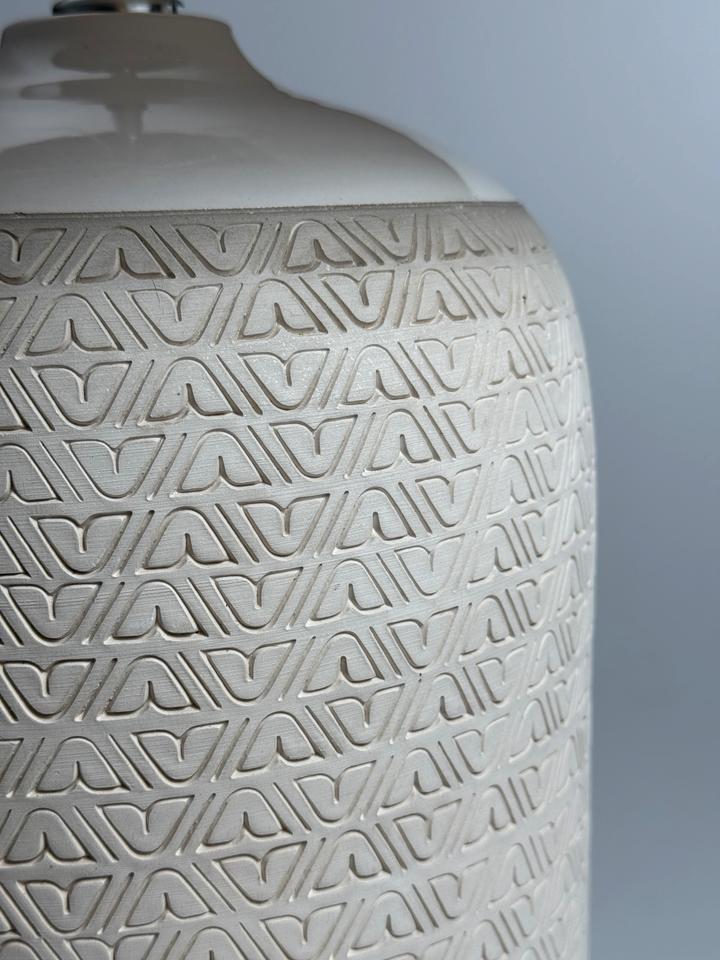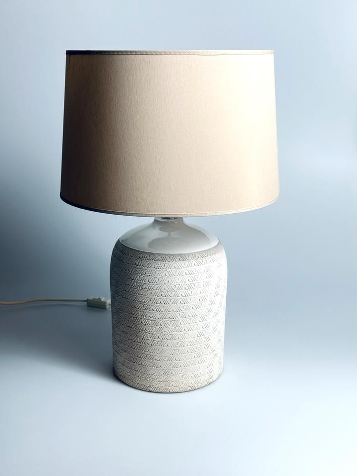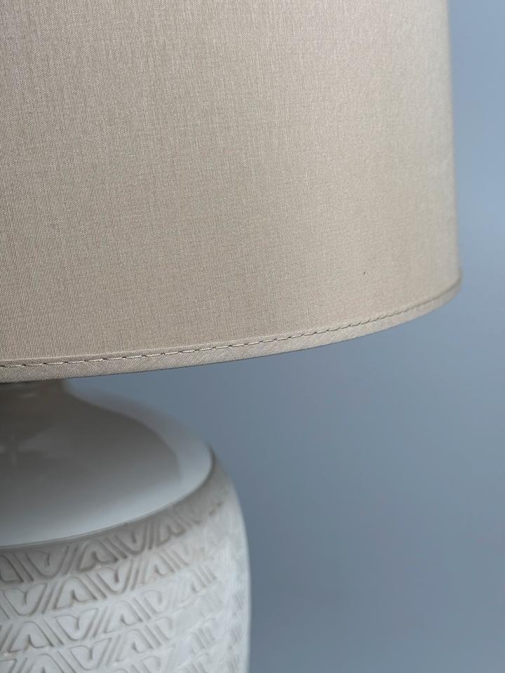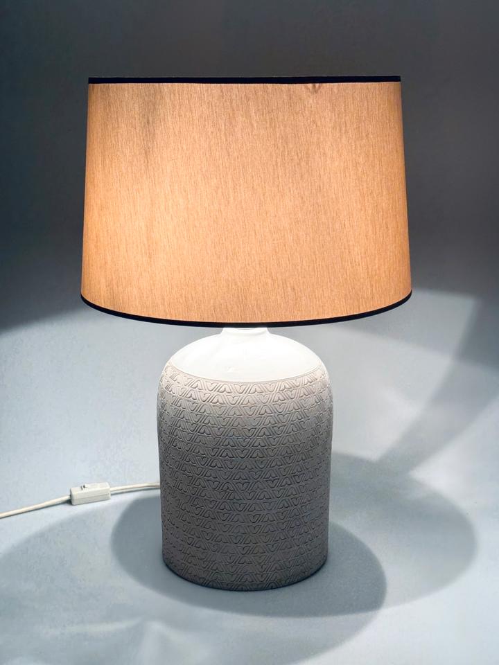 Lampe Tischlampe Keramik Ritzdekor Stoffschirm Groß 1970er