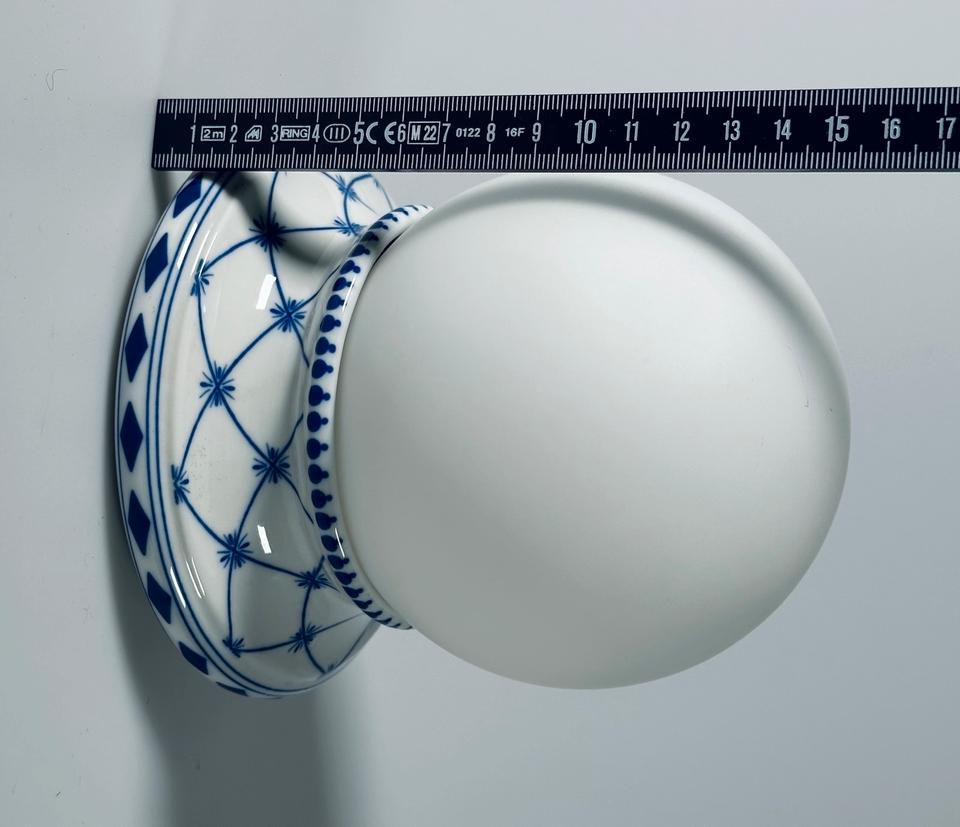 Wandleuchte aus Porzellan mit kobaltblauem Dekor und Opalglaskugel, Giulia Mangani Firenze, Italien.