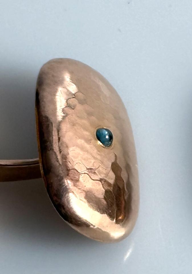Steinbesatz: kleiner runder blauer Cabochon, vermutlich Glas oder synthetischer Spinell