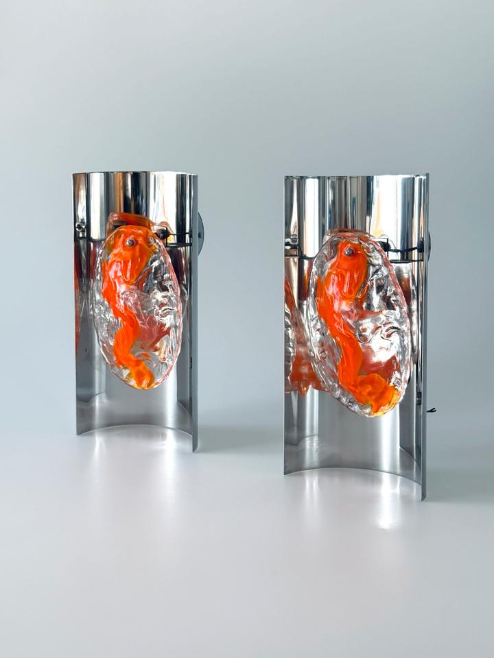 Mazzega Wandleuchte Wandlampe Murano Glas Chrom Lampe Paar 70er