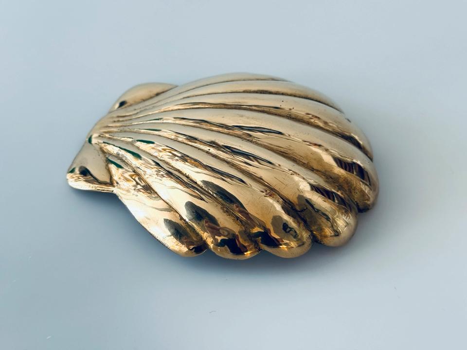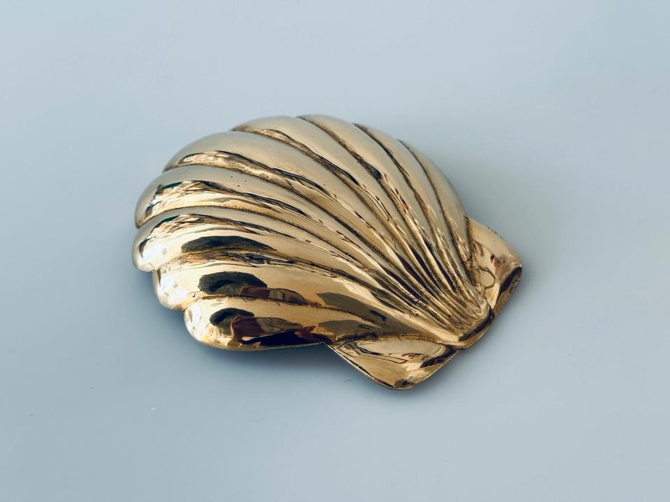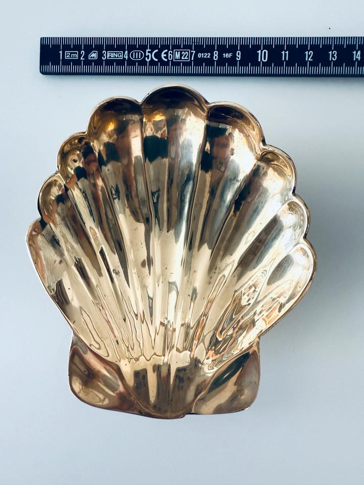 Schale aus massivem, polierten Messing in Form einer Jakobsmuschel, Italien, 1960er.