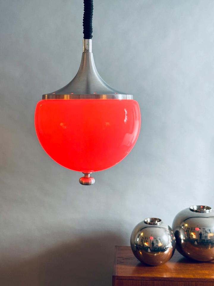 Sofern nicht anders angegeben, befinden sich die angebotenen Leuchten in originalem, authentischem Zustand, und sind vollumfänglich funktionsfähig, jedoch wird empfohlen, die Elektrik von einem Fachbetrieb prüfen zu lassen, da sie nicht mehr den heutigen VDE-Richtlinien entspricht. Leuchtmittel sind nicht Teil des Lieferumfangs.