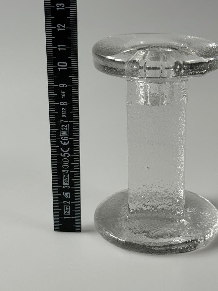 Der stabile und schwere Kerzenständer ist aus dickwandigem Eisglas gefertigt. Der Zustand ist hervorragend ohne jedwede Beschädigung und ohne Gebrauchsspuren.