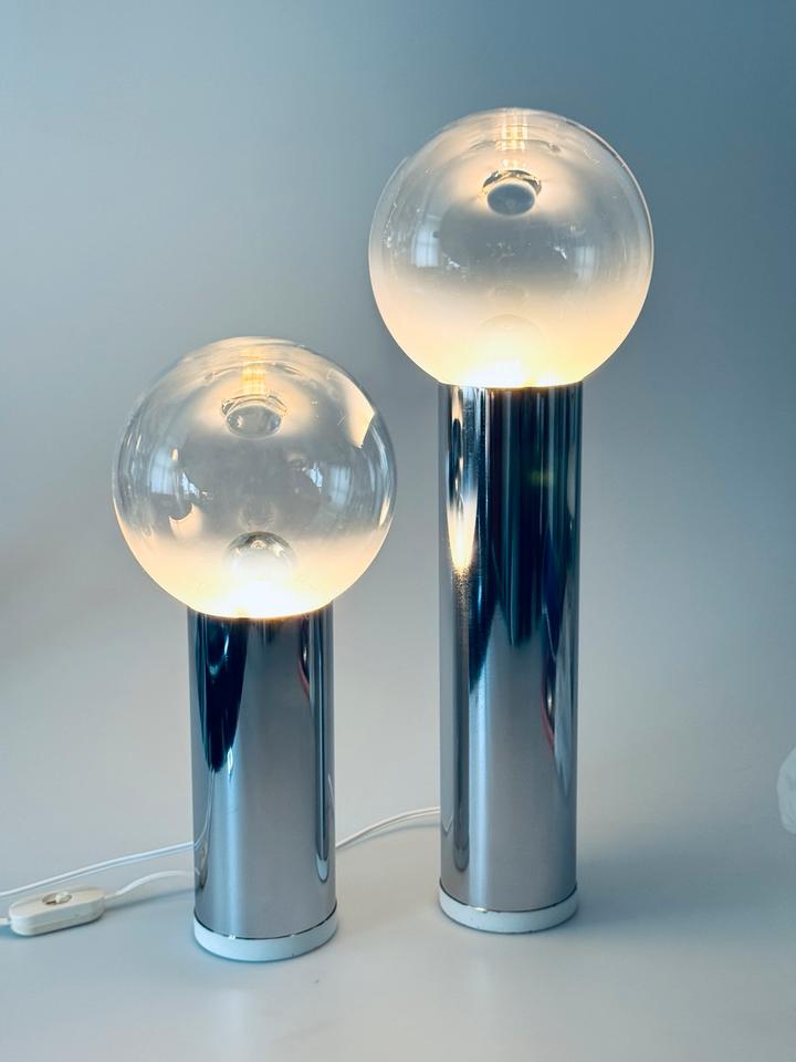 Reggiani Lampe OMA Italy Tischleuchten Paar Chrom Spaceage 70er