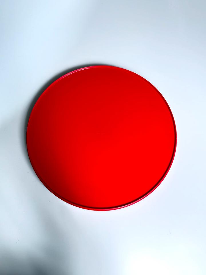 Minimalistisches knallrotes Melamin Tablett, Schweden, 1970er Jahre. Durchmesser 38,5 cm.