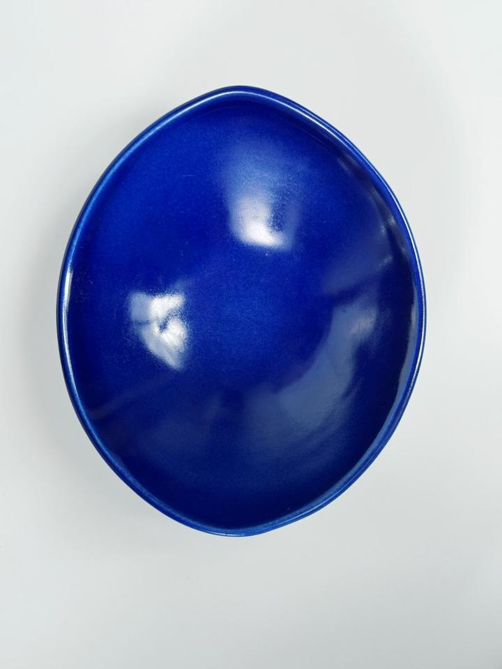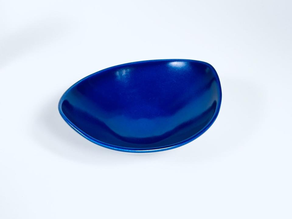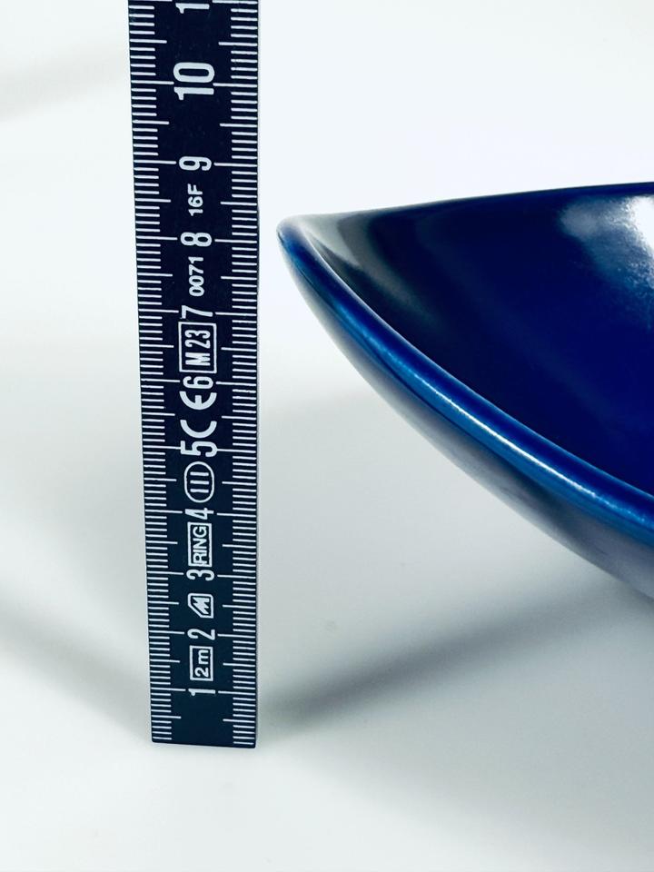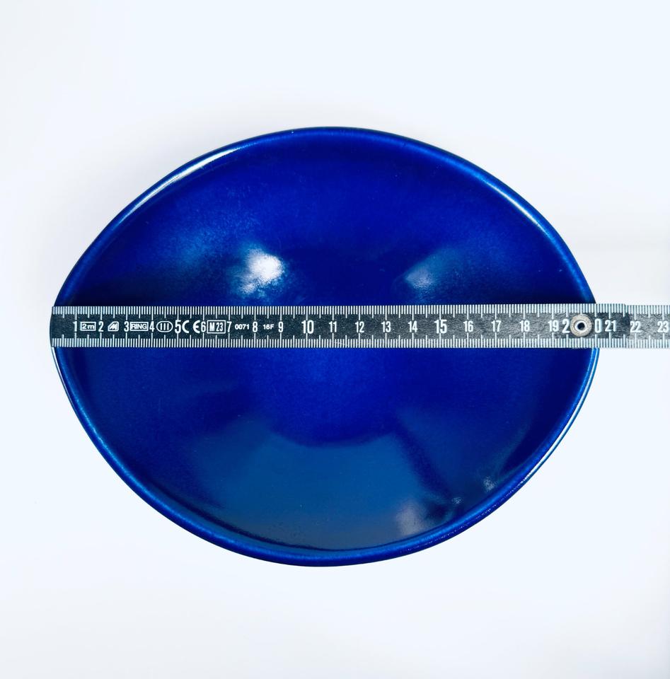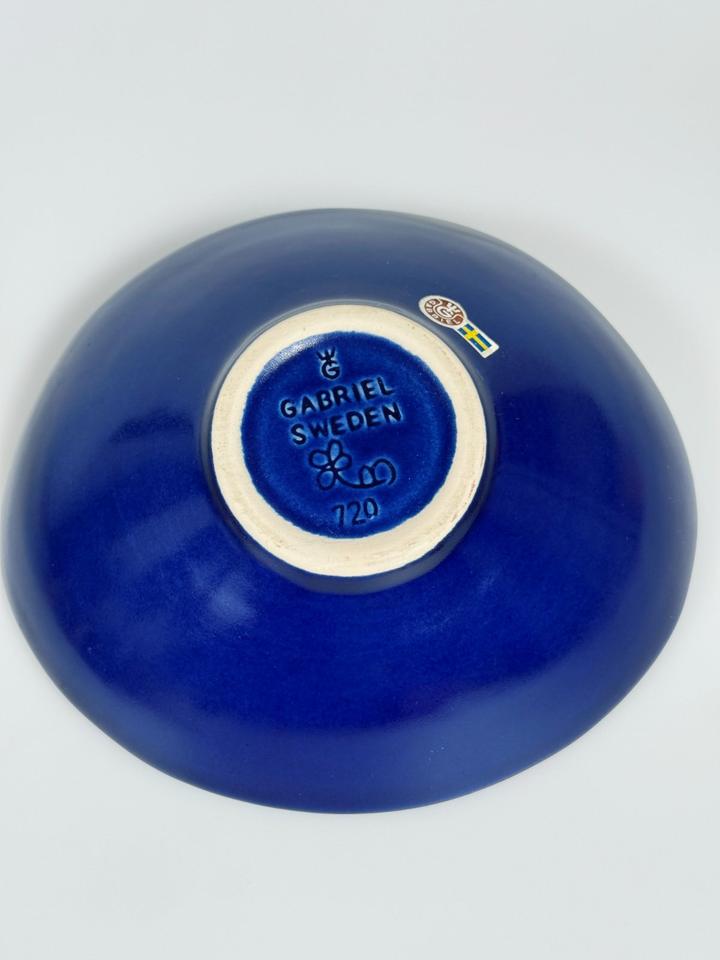 So gut wie neuwertige Schale, Gabriel Keramik, Schweden 1960er. Die keramische Schale ist mit einer blauen Glasur versehen und hat keinerlei Beschädigungen. Dafür hat sie noch das Original-Etikett.