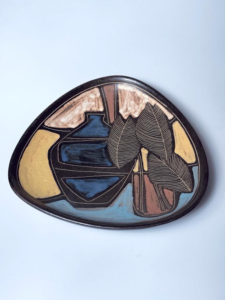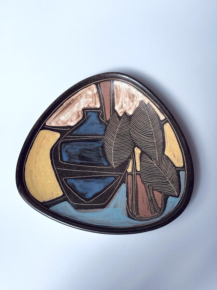 Schale Studiokeramik abstraktes Design dreieckig 1960er