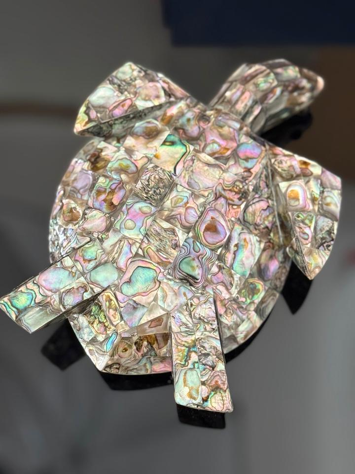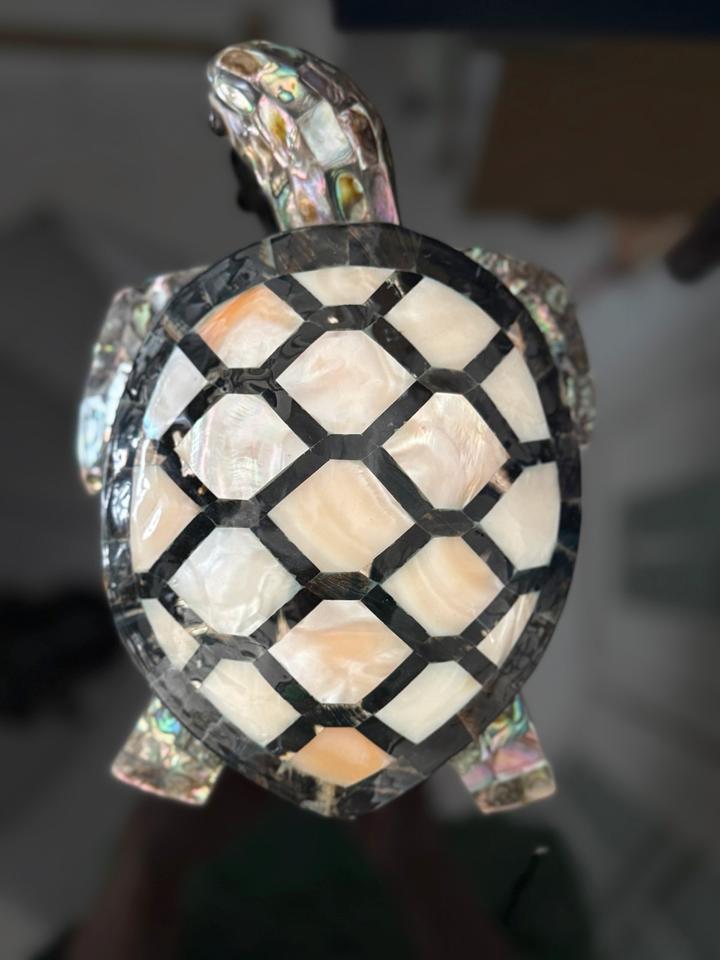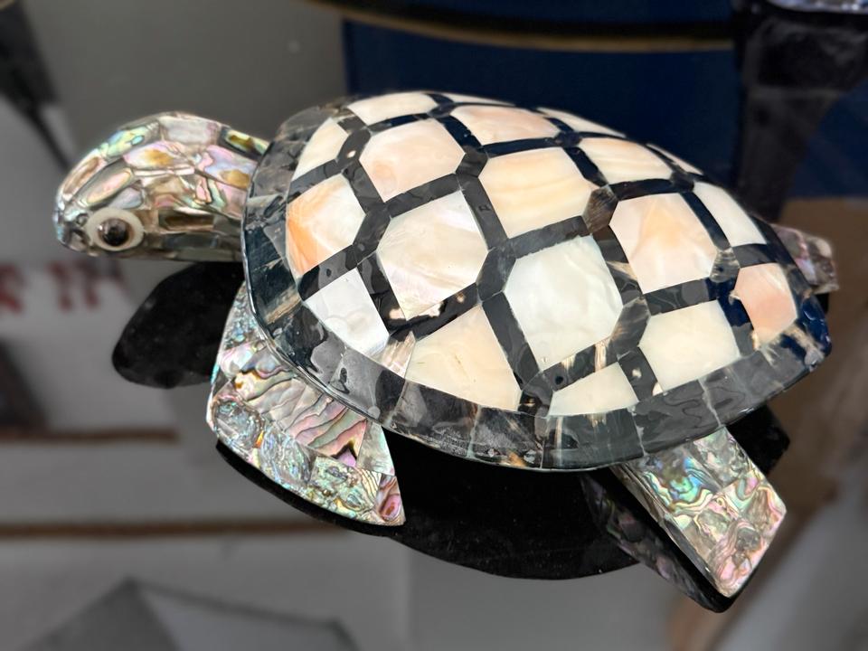 Perlmutt wird traditionell in vielerlei Formen kunsthandwerklich auf höchstem Niveau in Mexiko verarbeitet. Die Meeresschildkröte hat in der mexikanischen Mythologie als Symbol für Langlebigkeit und Weisheit große Bedeutung.