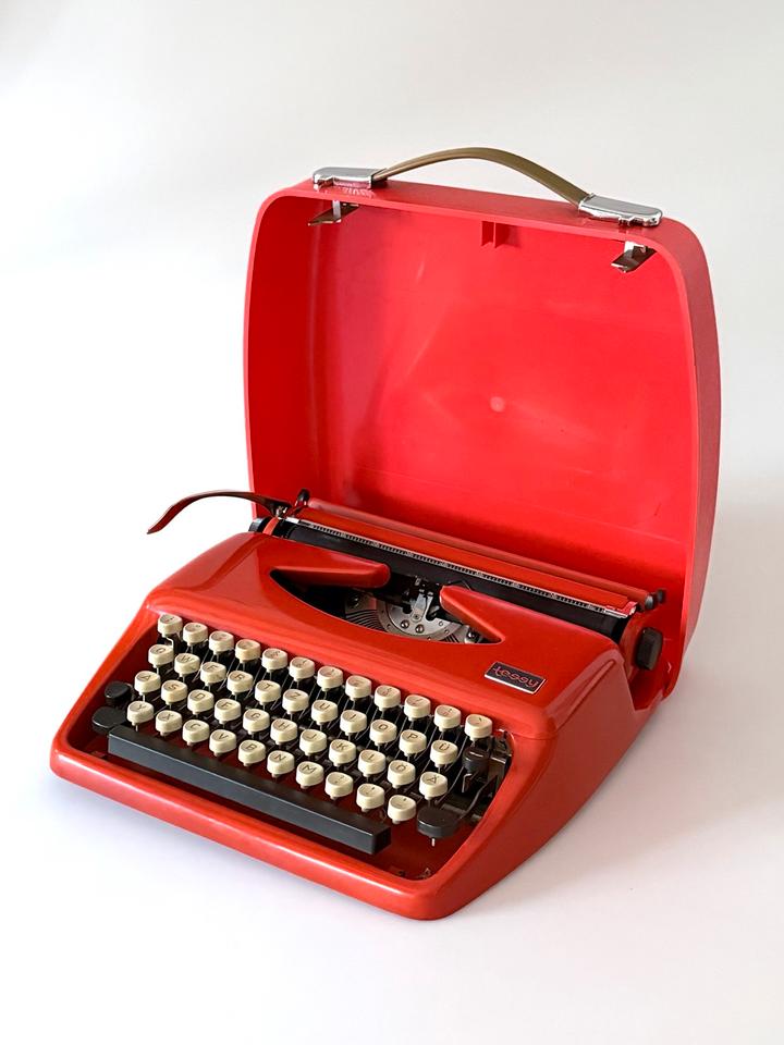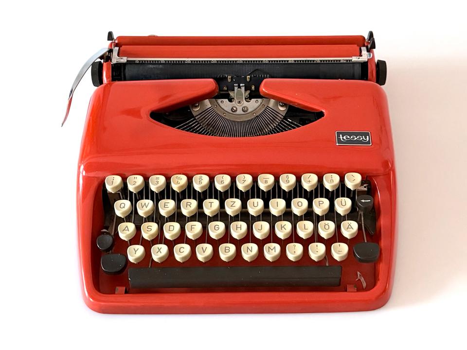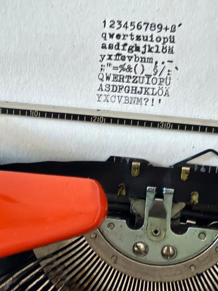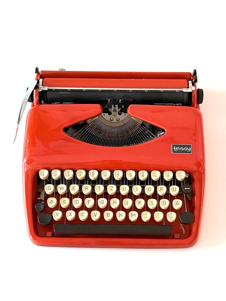 Schreibe die erste Rezension für „Schreibmaschine Tessy Tippa Adler Reise Orange 1970er“