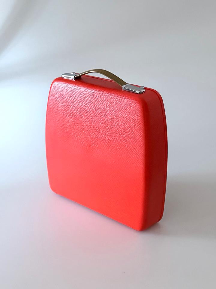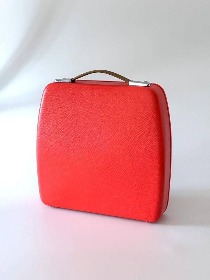 Reiseschreibmaschine von Triumph Adler, Modell Tessy im orangen Kunststoffgehäuse, Deutschland, 1973. Die Schreibmaschine wird im originalen, orangen Kunststoffkoffer geliefert. Die Tessy ist eine abgespeckte Version der mit dem Designpreis ausgezeichneten Tippa. Sie wurde nur in einem kurzen Zeitraum produziert und ist daher heutzutage selten zu finden.