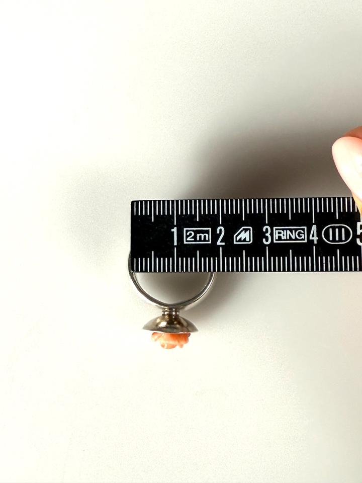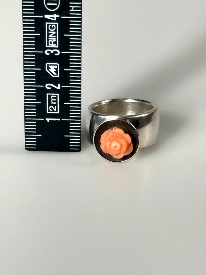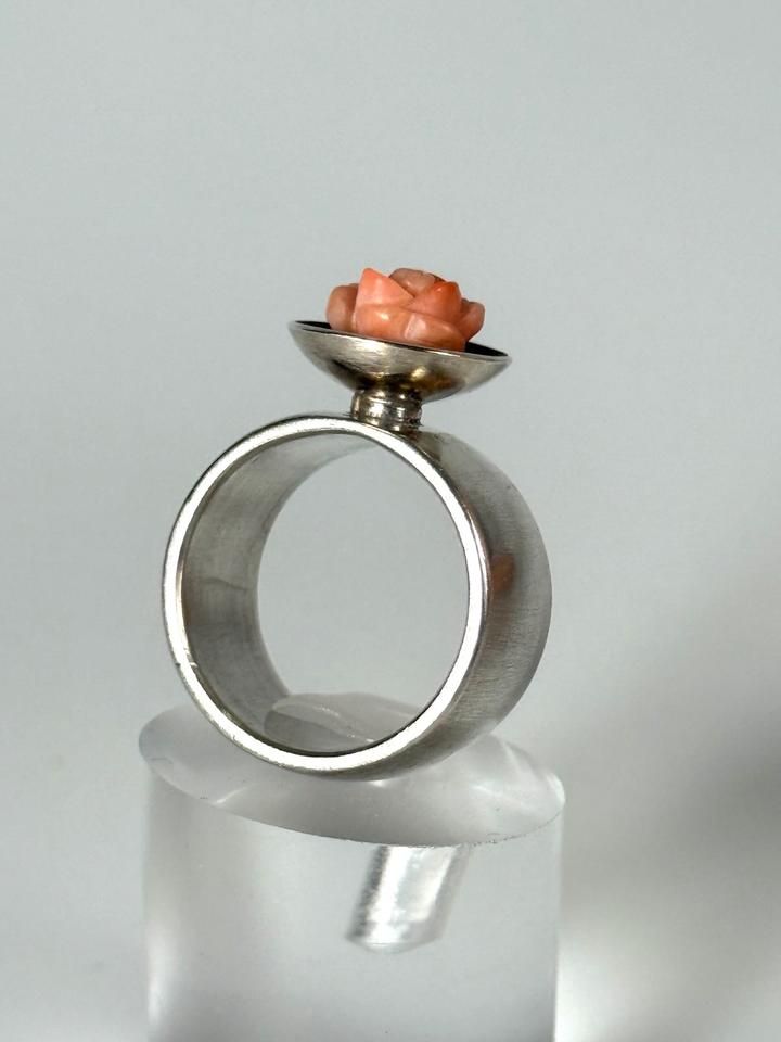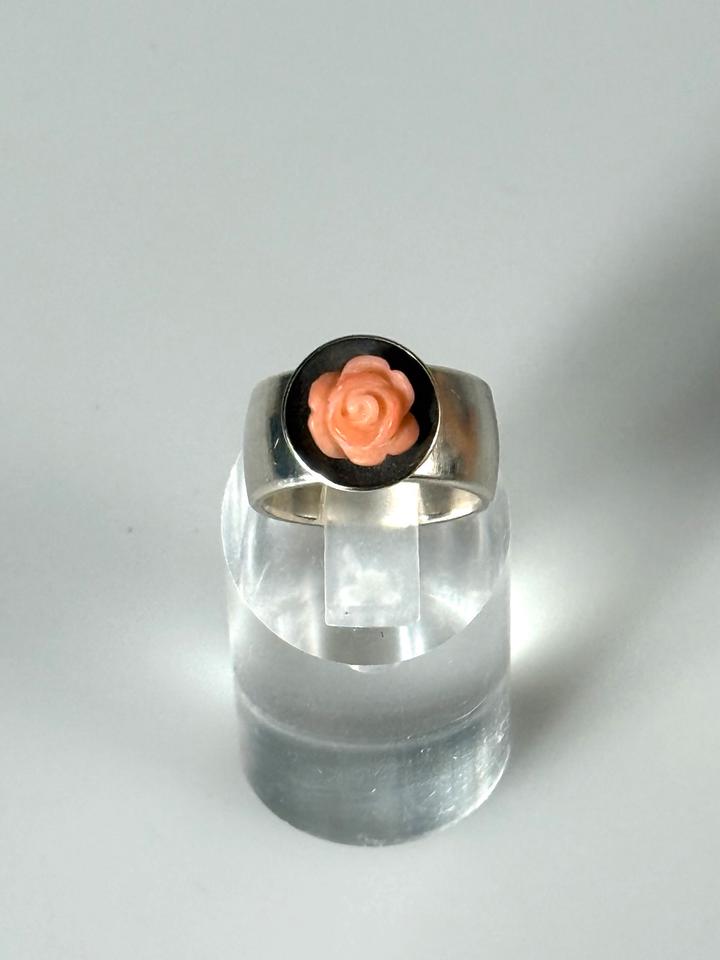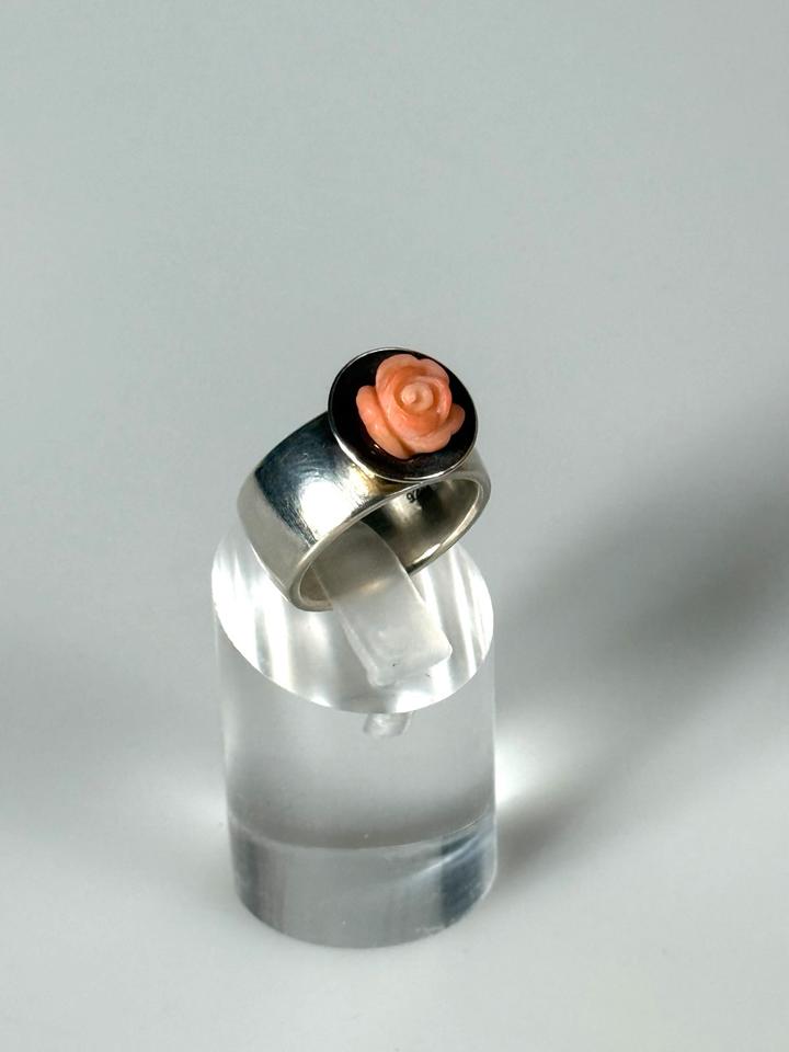 Massiver Fingerring aus 925er Silber, mit Aufsatz einer geschwärzten Schale, die eine roséfarbene