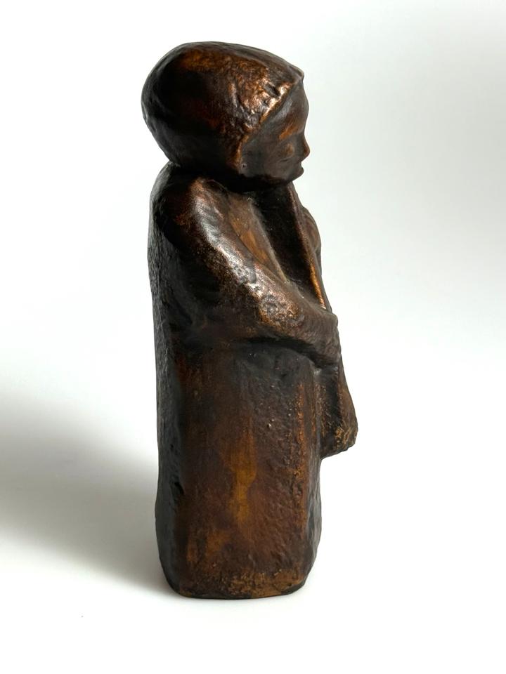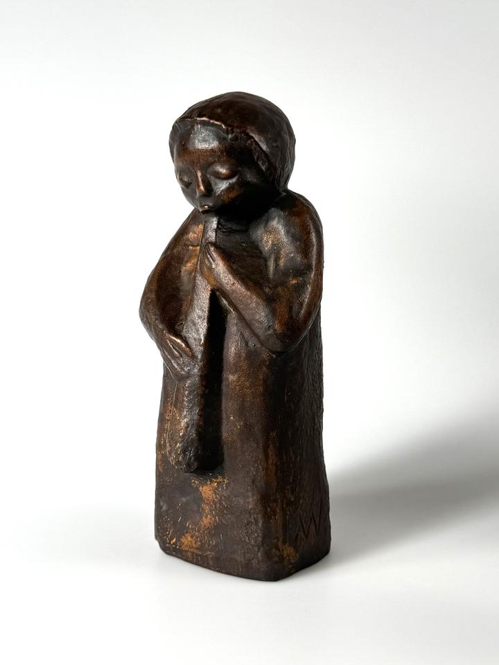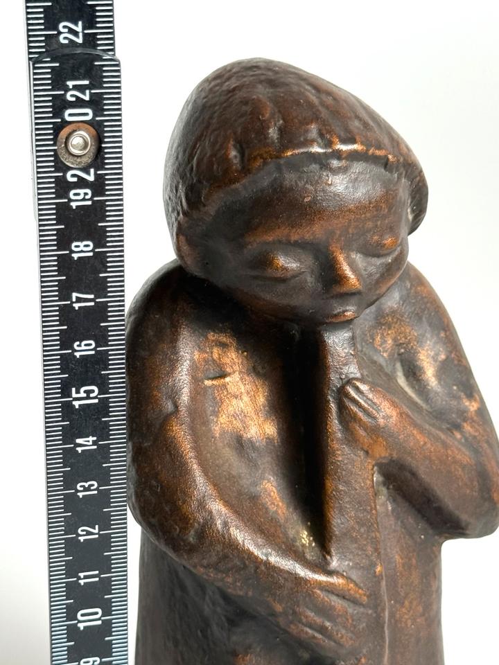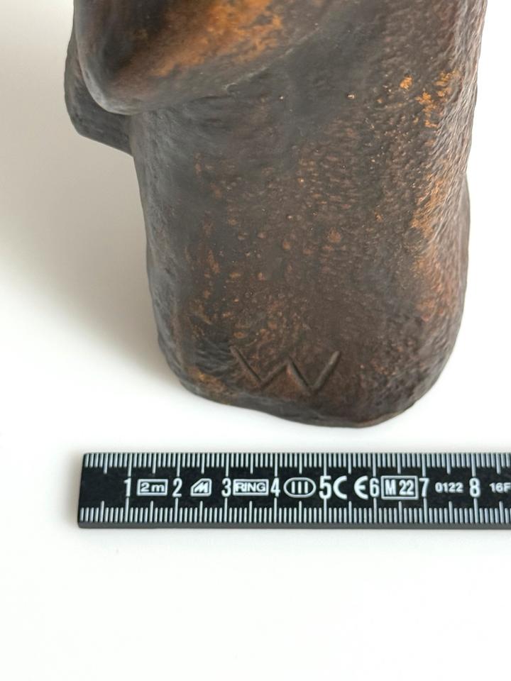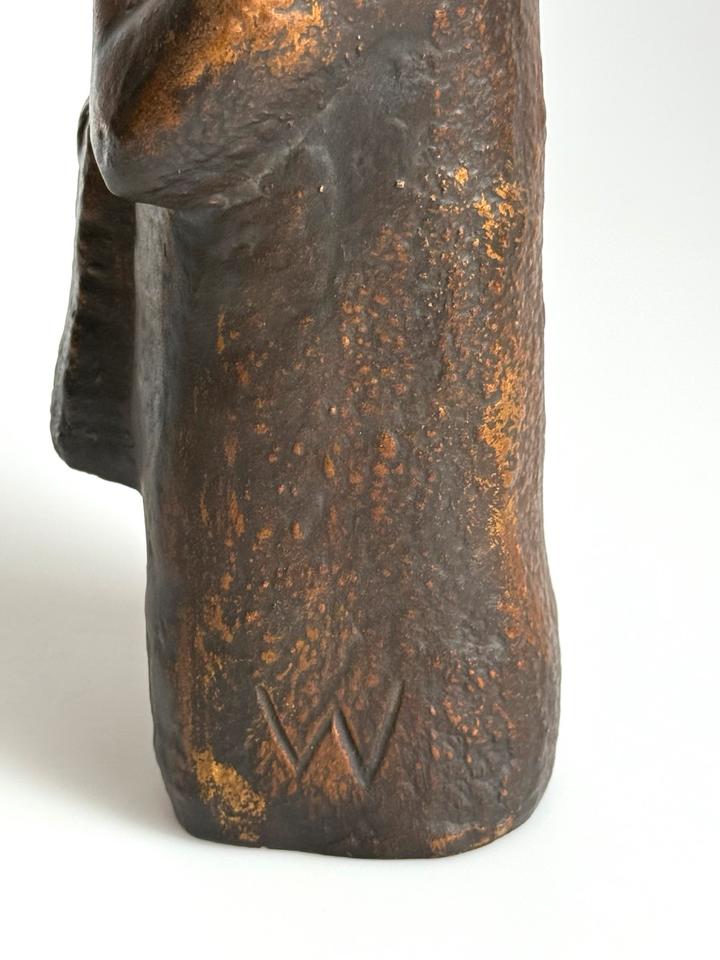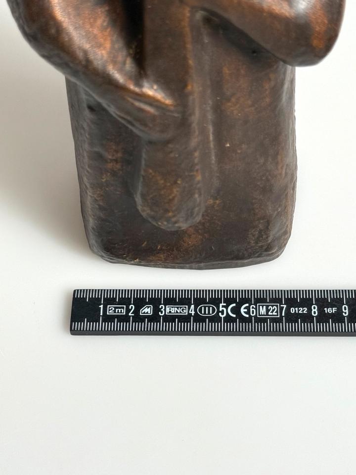 Die aus Keramik gefertigte Skulptur ist mit einer bronzefarbenen Glasur versehen und in hervorragendem Zustand ohne jedwede Mängel/ Beschädigungen.