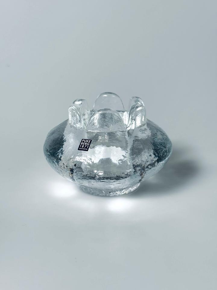 Der stabile schwere Kerzenständer ist aus dickwandigem Eisglas gefertigt. Der Zustand ist hervorragend ohne jedwede Beschädigung und ohne Gebrauchsspuren.
