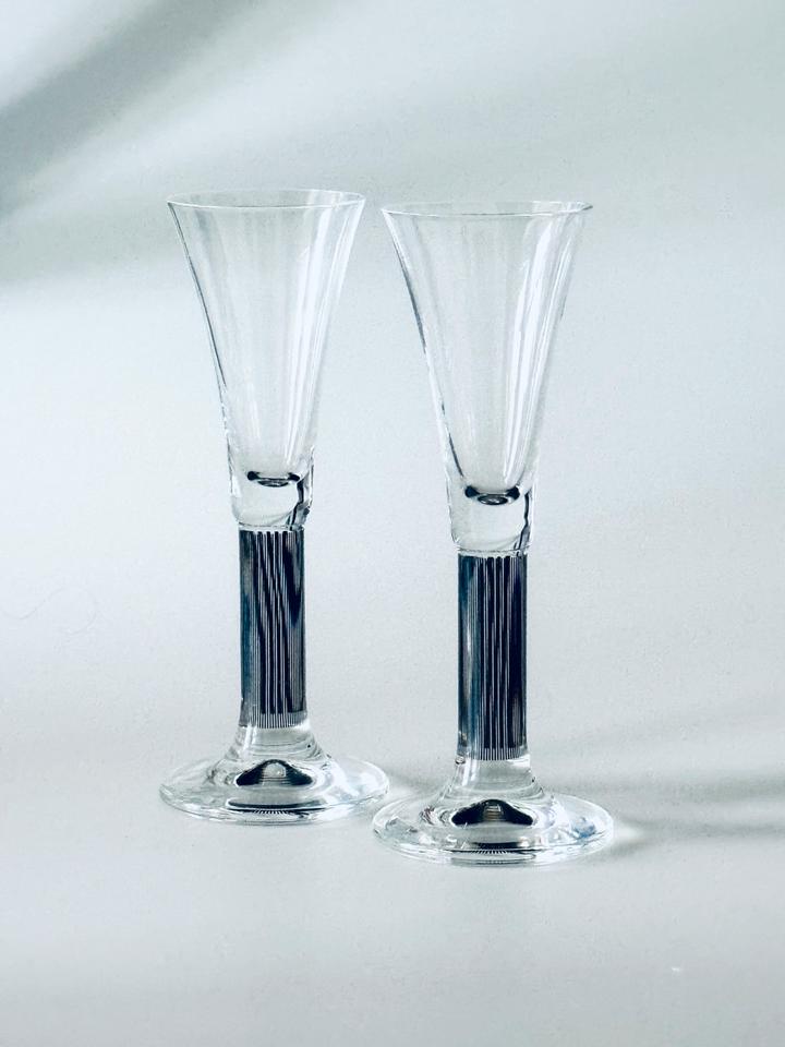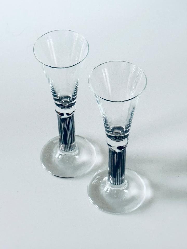 Set aus 2 Likörgläsern von Thomas, Model Collona, mit schwarzgestreiftem Stiel.