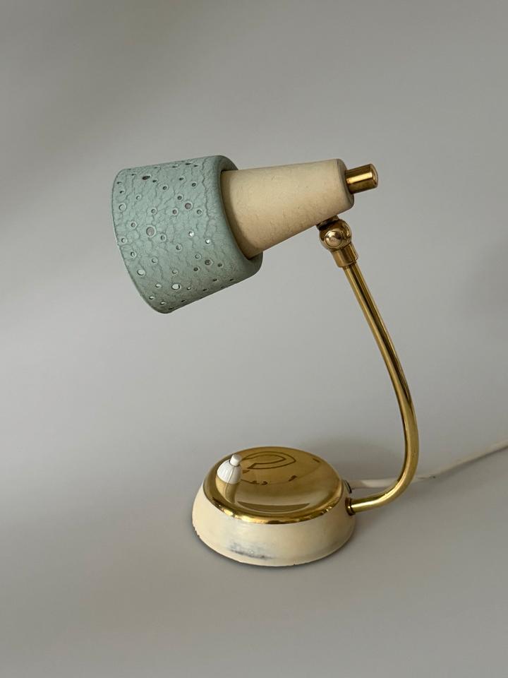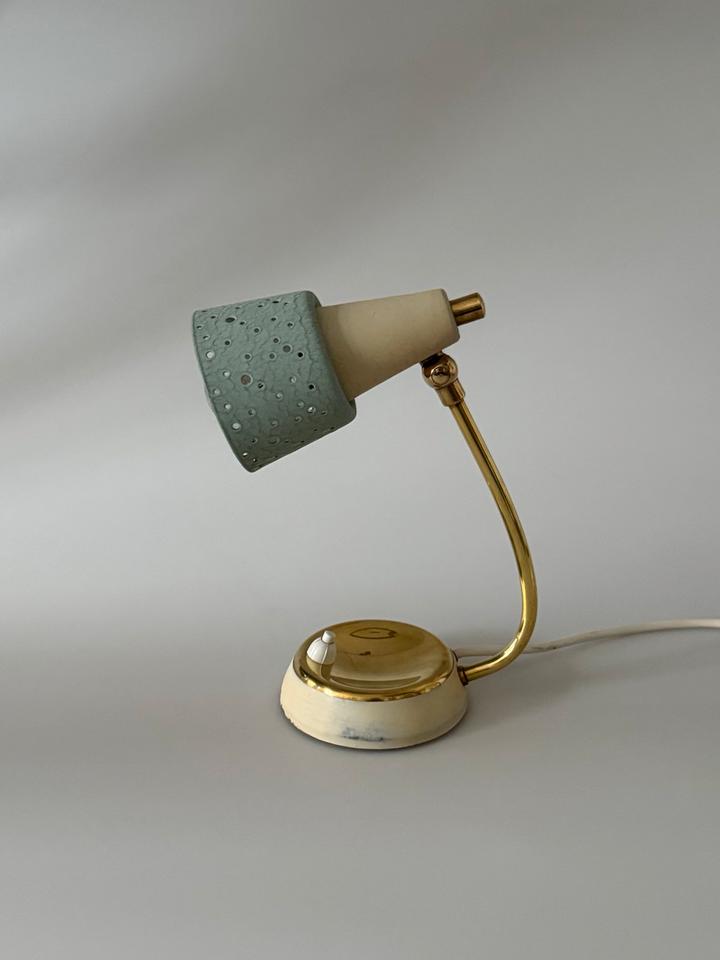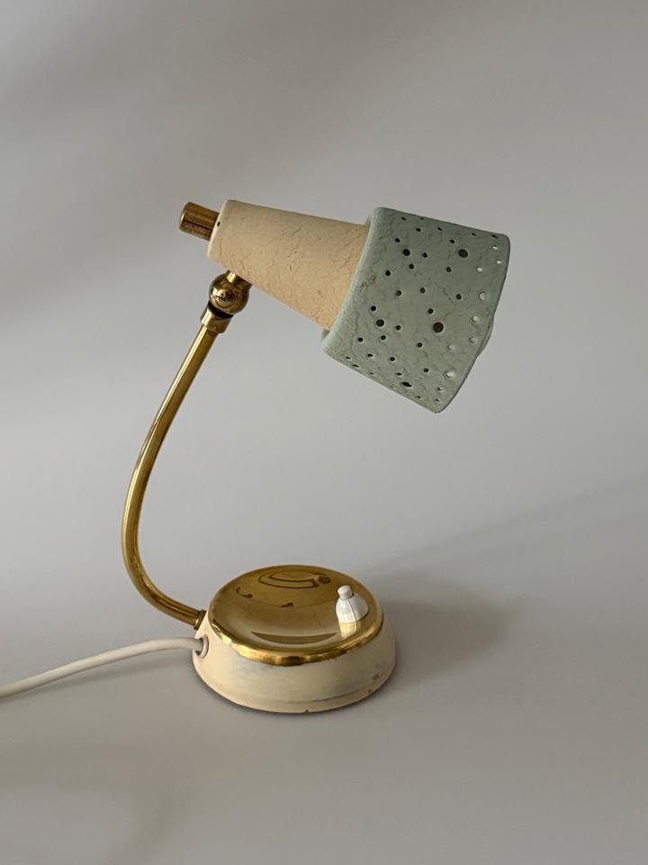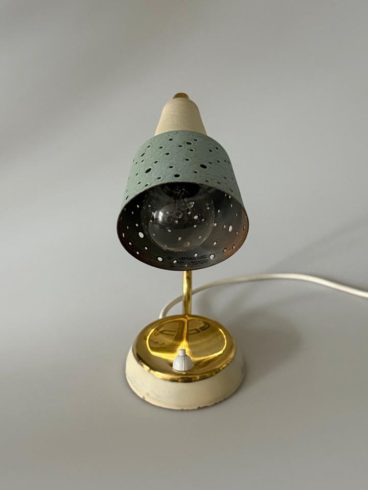 Tischleuchte Lampe 50s Messing Lochmuster Mintgrün 1950er