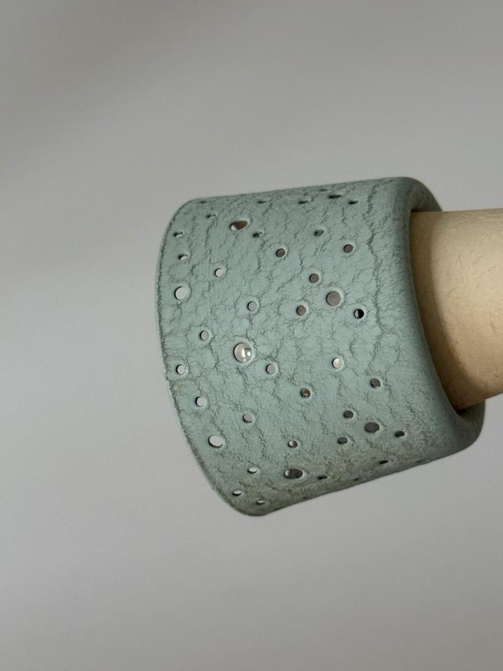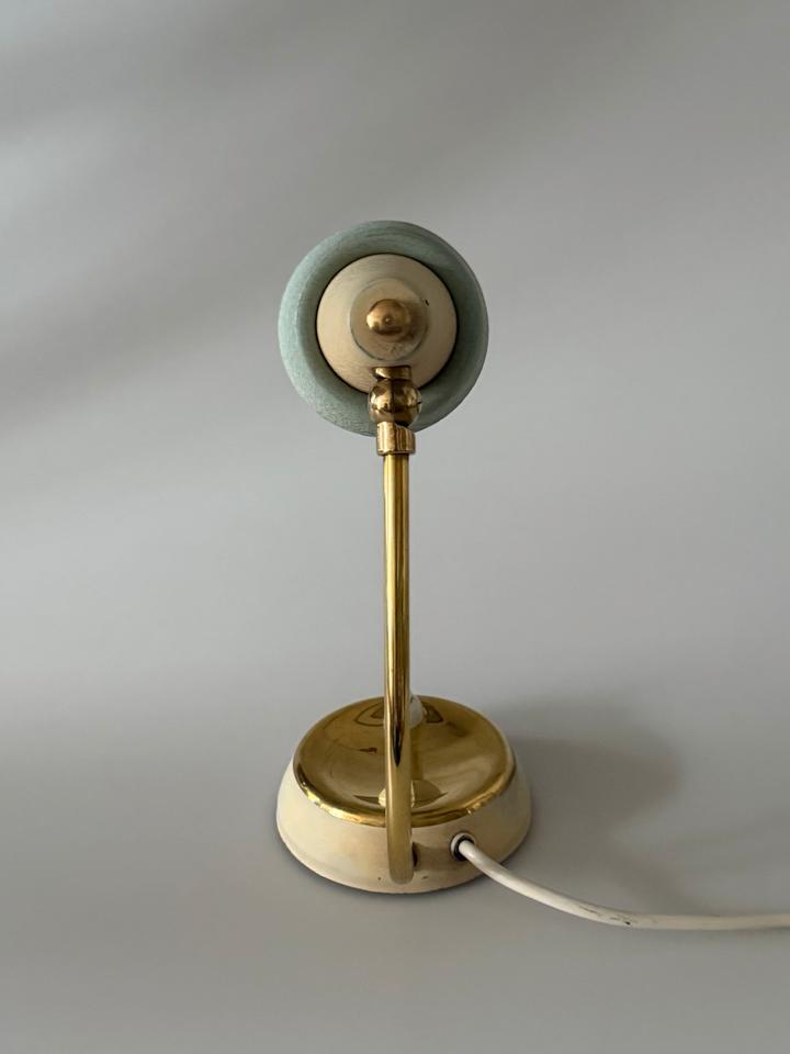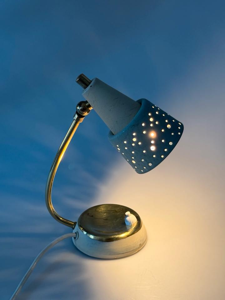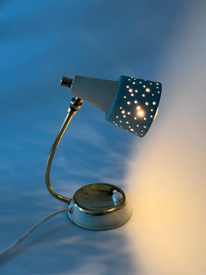 Schreibe die erste Rezension für „Tischleuchte Lampe 50s Messing Lochmuster Mintgrün 1950er“