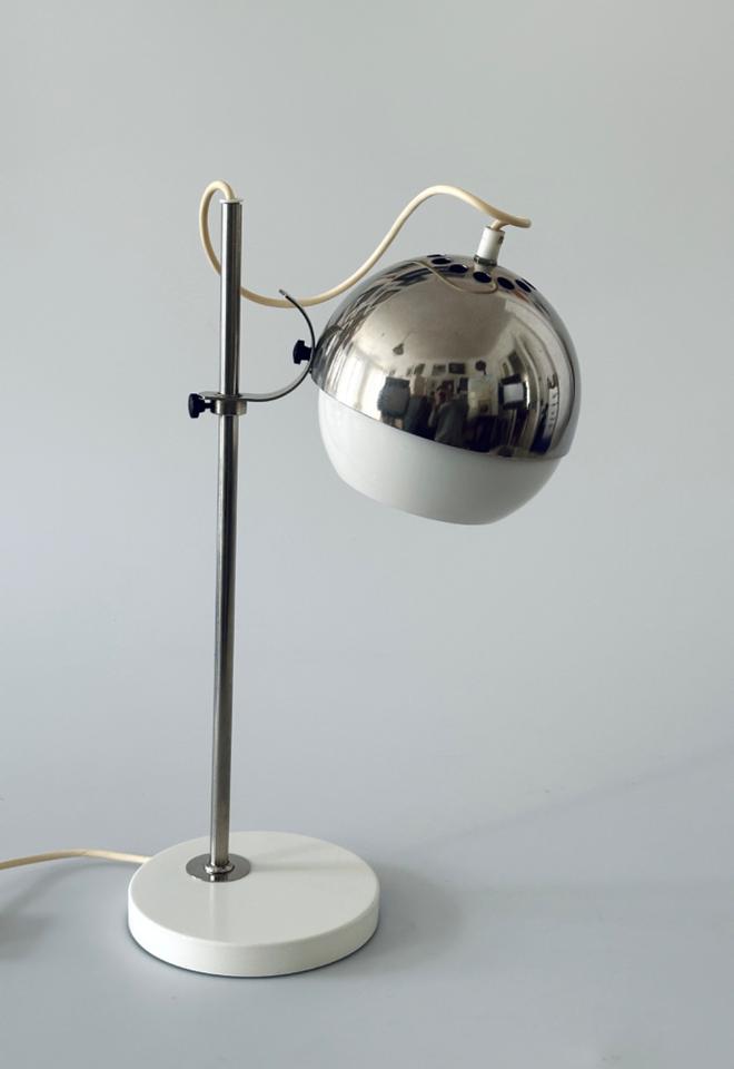 Tischleuchte Lampe Space Age Eyeball Chrom Weiß 1970er