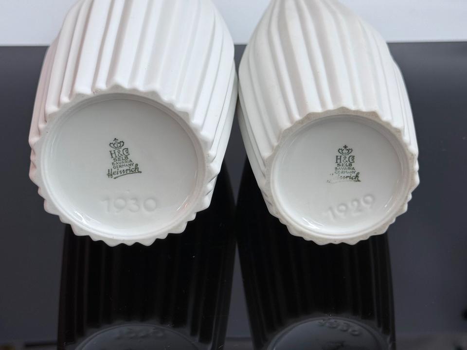 Die Vasen sind ohne jedwede Beschädigung, und haben nur geringfügigste und minimalste, kaum sichtbare Gebrauchsspuren. Stempelmarke Heinrich & Co, Modellnummer 1929 und 1930.