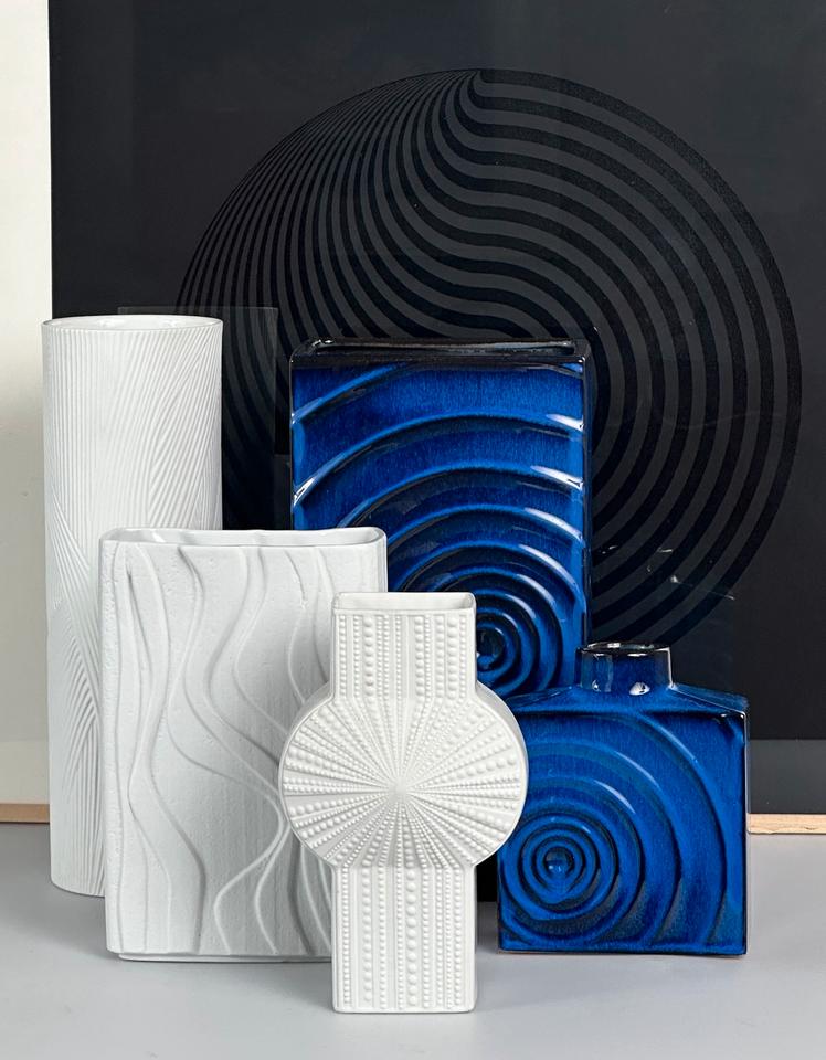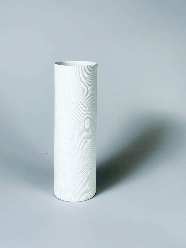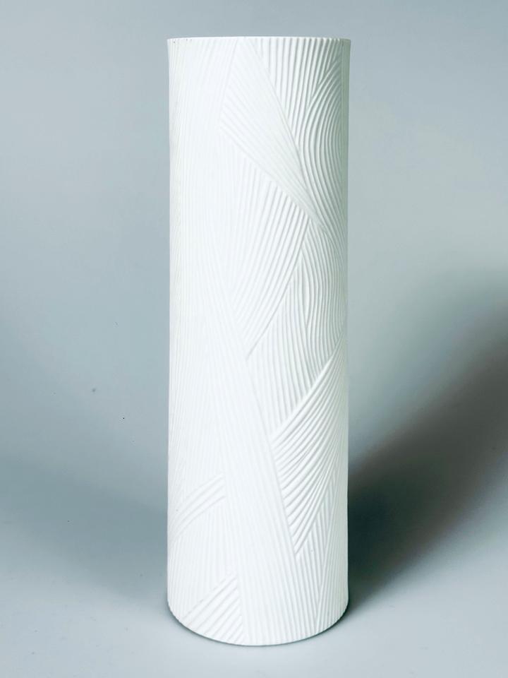 Große Vase aus Biskuitporzellan, Entwurf Werner Schreib für Rosenthal Studio-Linie, 1960er. Die reliefartige grafische Gestaltung kommt durch das matte Buskuitporzellan besonders gut zur Geltung und hat an Modernität nicht verloren.