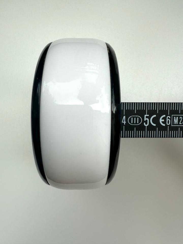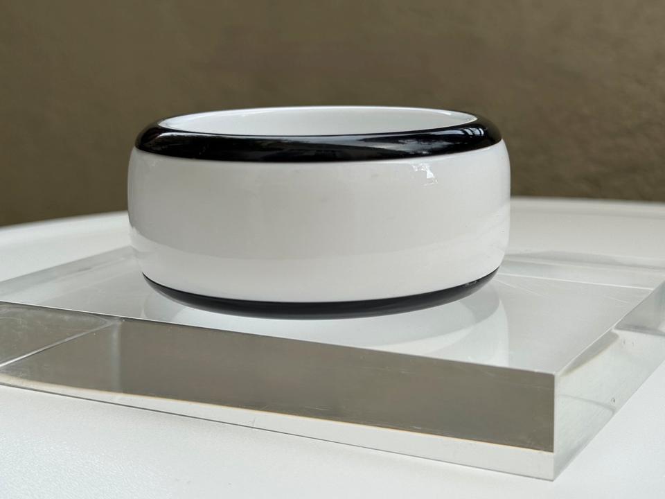 Breiter und massiver Armreif aus weißem Kunststoff mit schwarzem Rand, Deutschland, 1980er.
