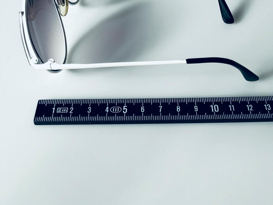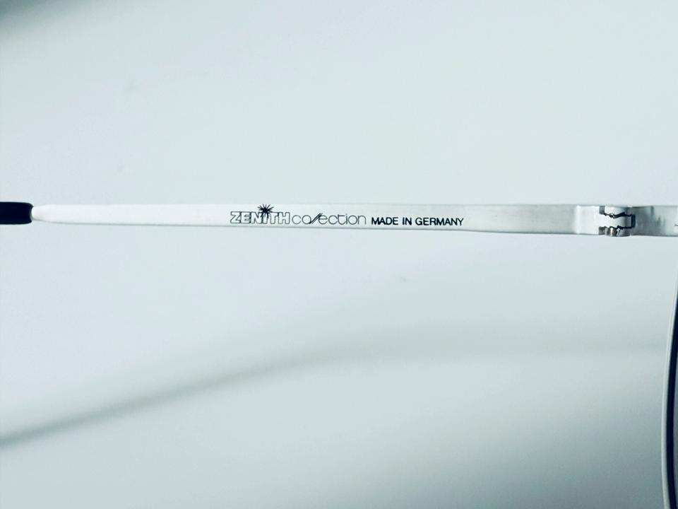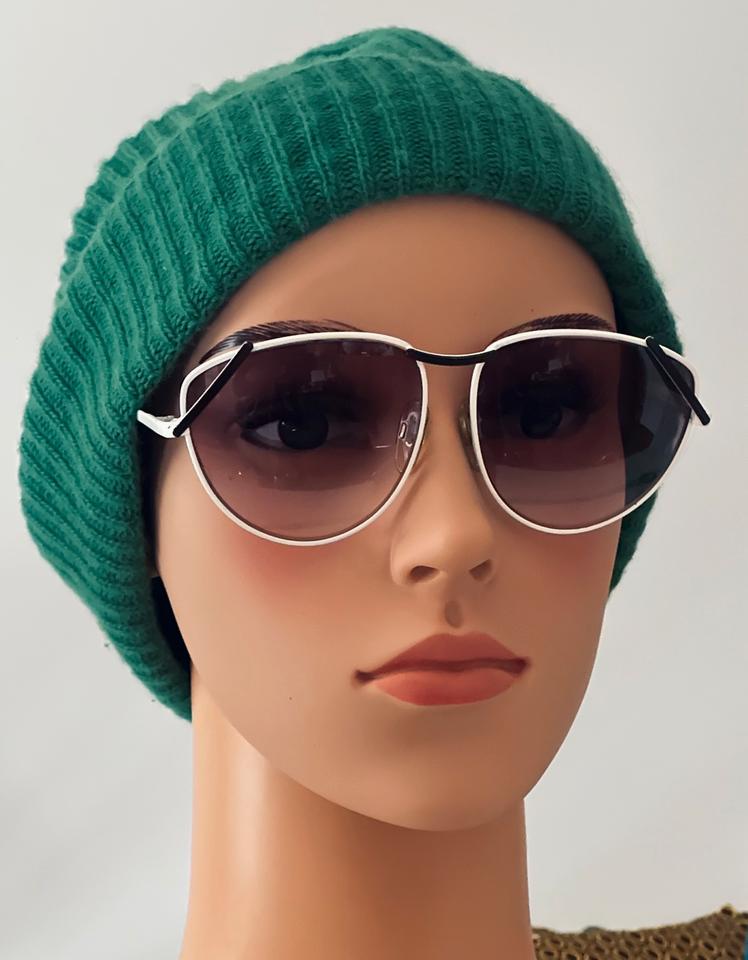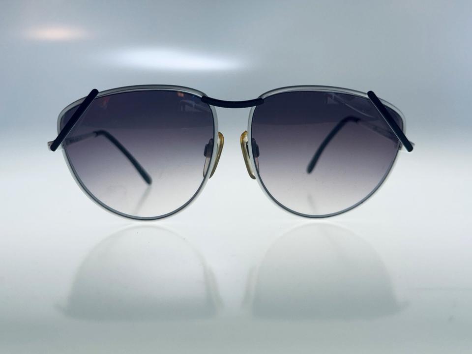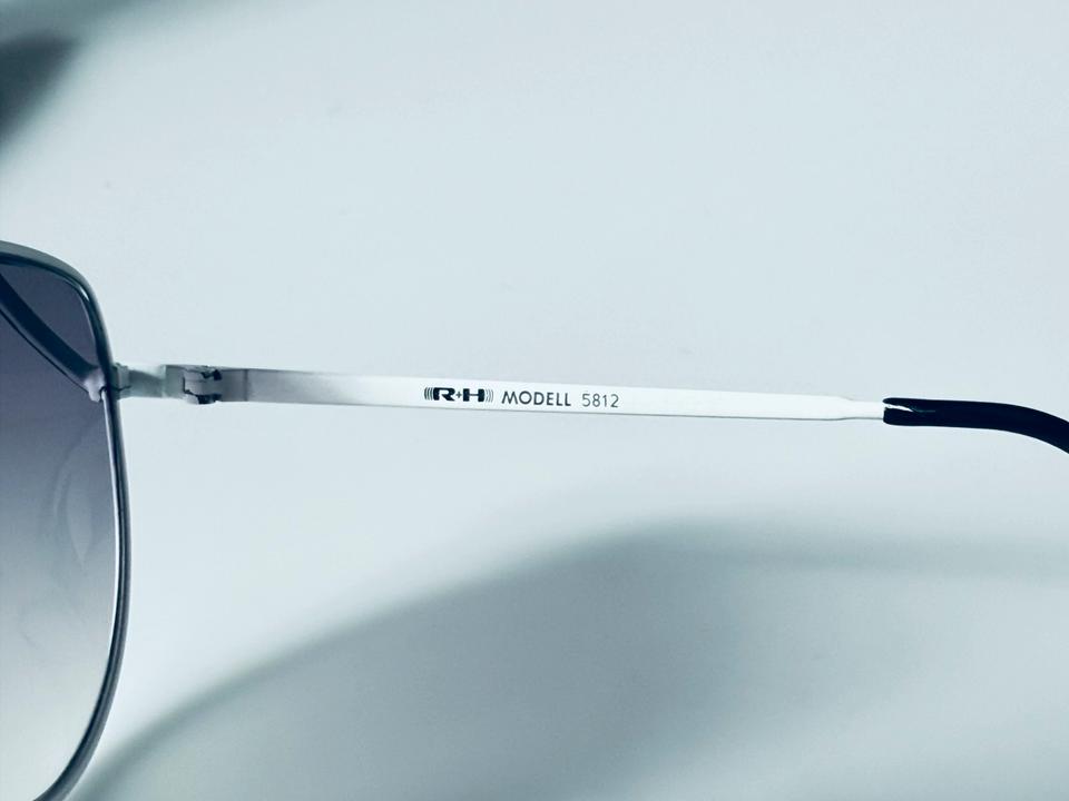 Vintage Sonnenbrille aus weiß lackiertem Metall von R+H Germany, 1980er. Die Brille ist in gutem Vintage- Zustand mit partiellen Alters-und Gebrauchsspuren und darüber hinaus hochwertig verarbeitet, wie auch auf den Fotos zu erkennen ist. Die Gläser sind violett im Verlauf getönt und bestehen aus Normalglas ohne Stärken.